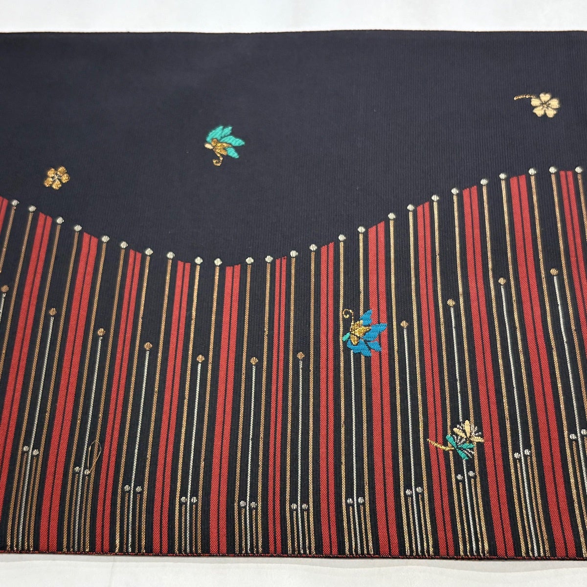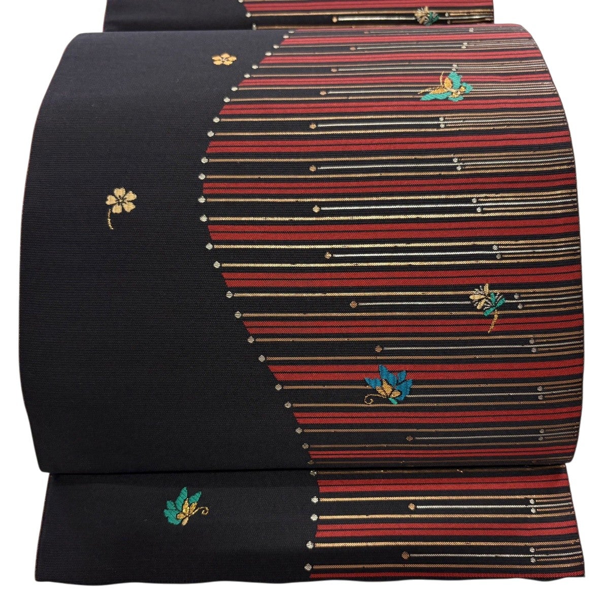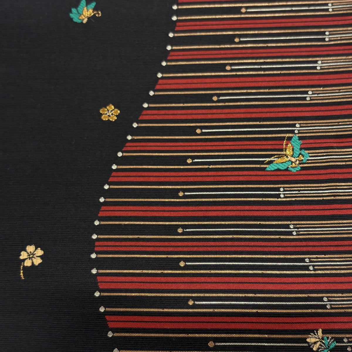 袋帯 秀品 草花 蝶 金糸 箔 墨色 六通 正絹