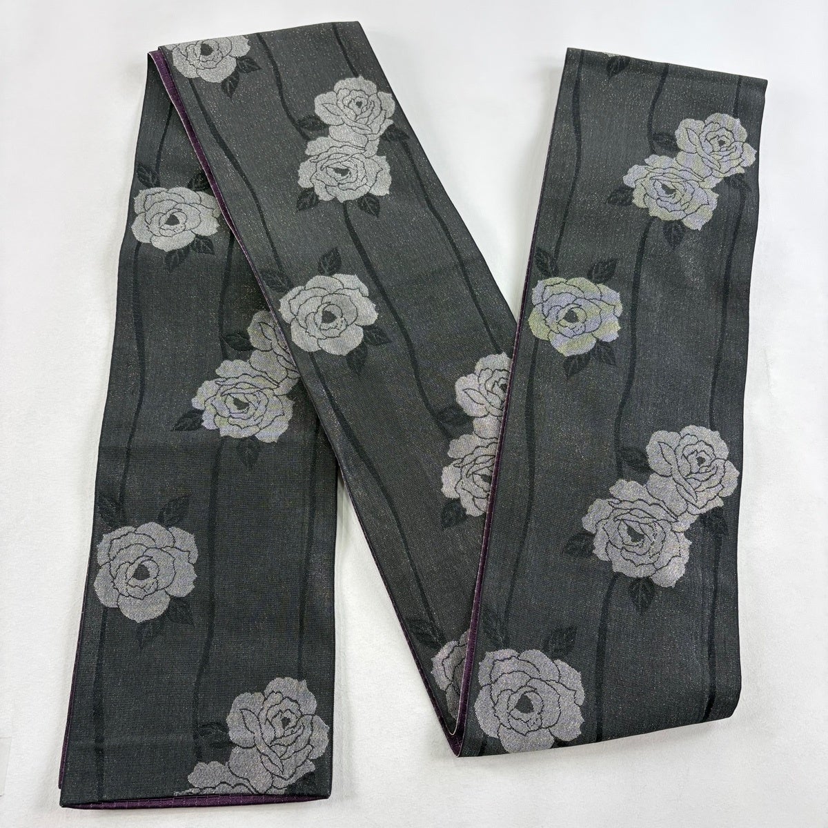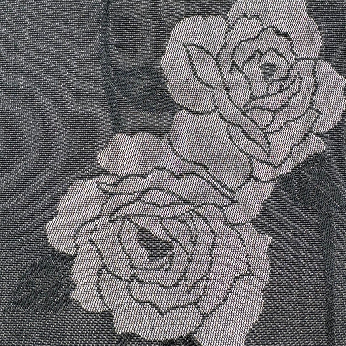袋帯 秀品 夏帯 花唐草 金銀糸 墨色 六通 正絹