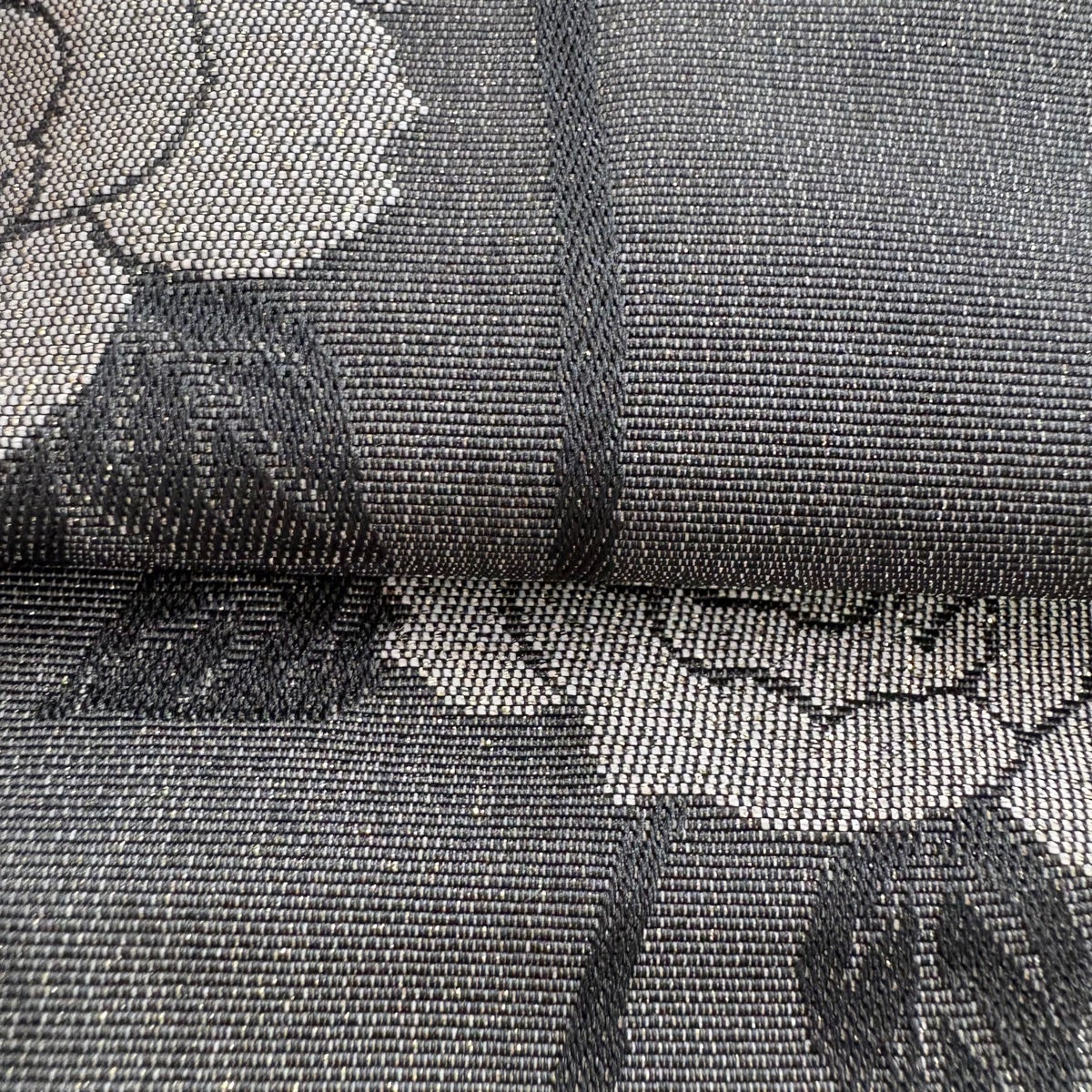 袋帯 美品 秀品 幾何学 金銀糸 墨色 六通 正絹