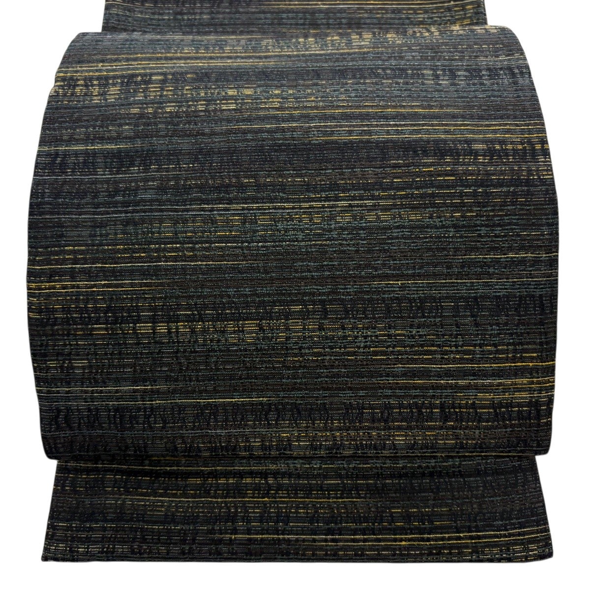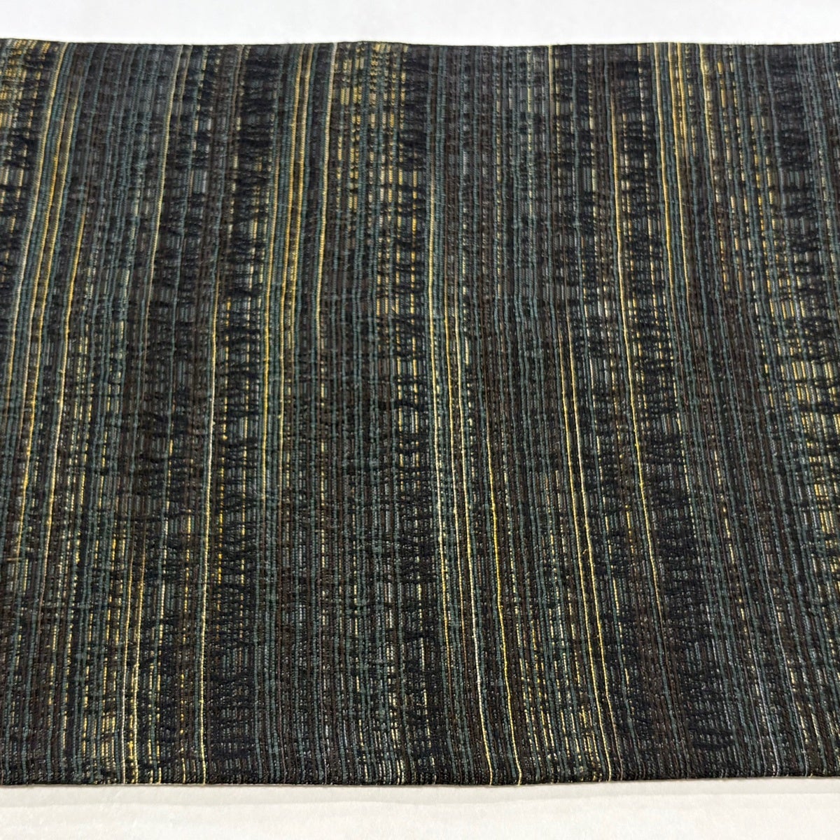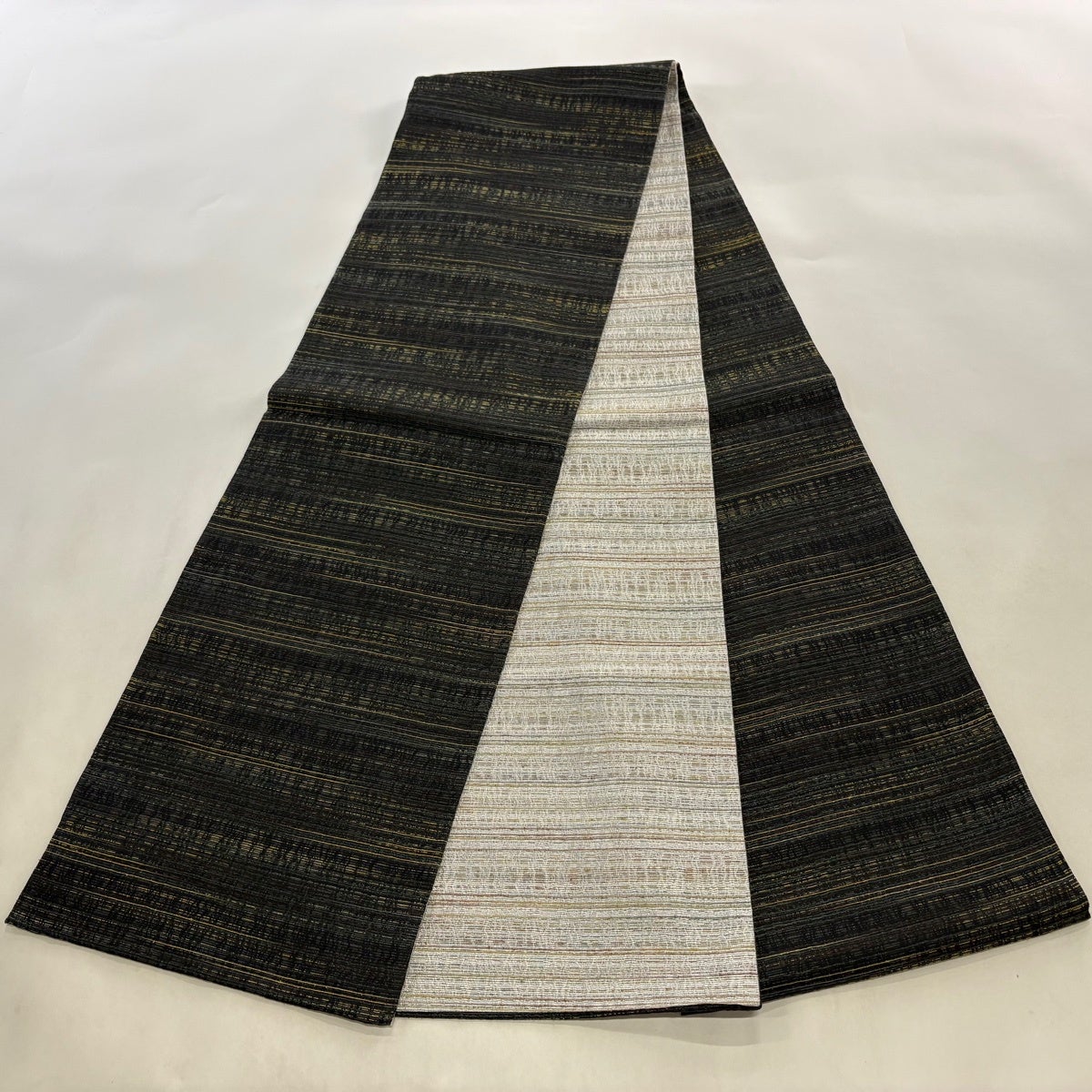 【美品】 袋帯 秀品 紬地 縞 幾何学 墨色 全通 正絹