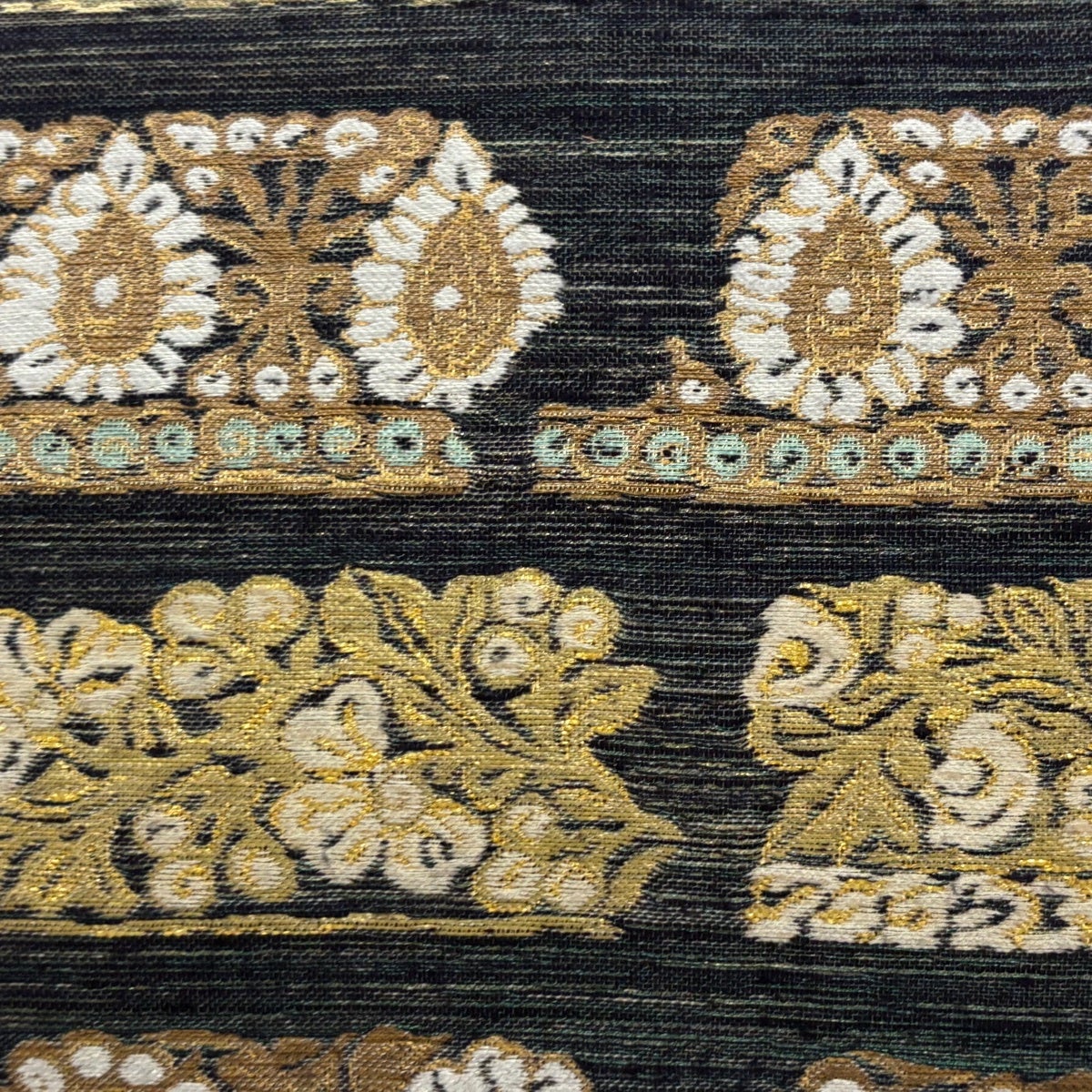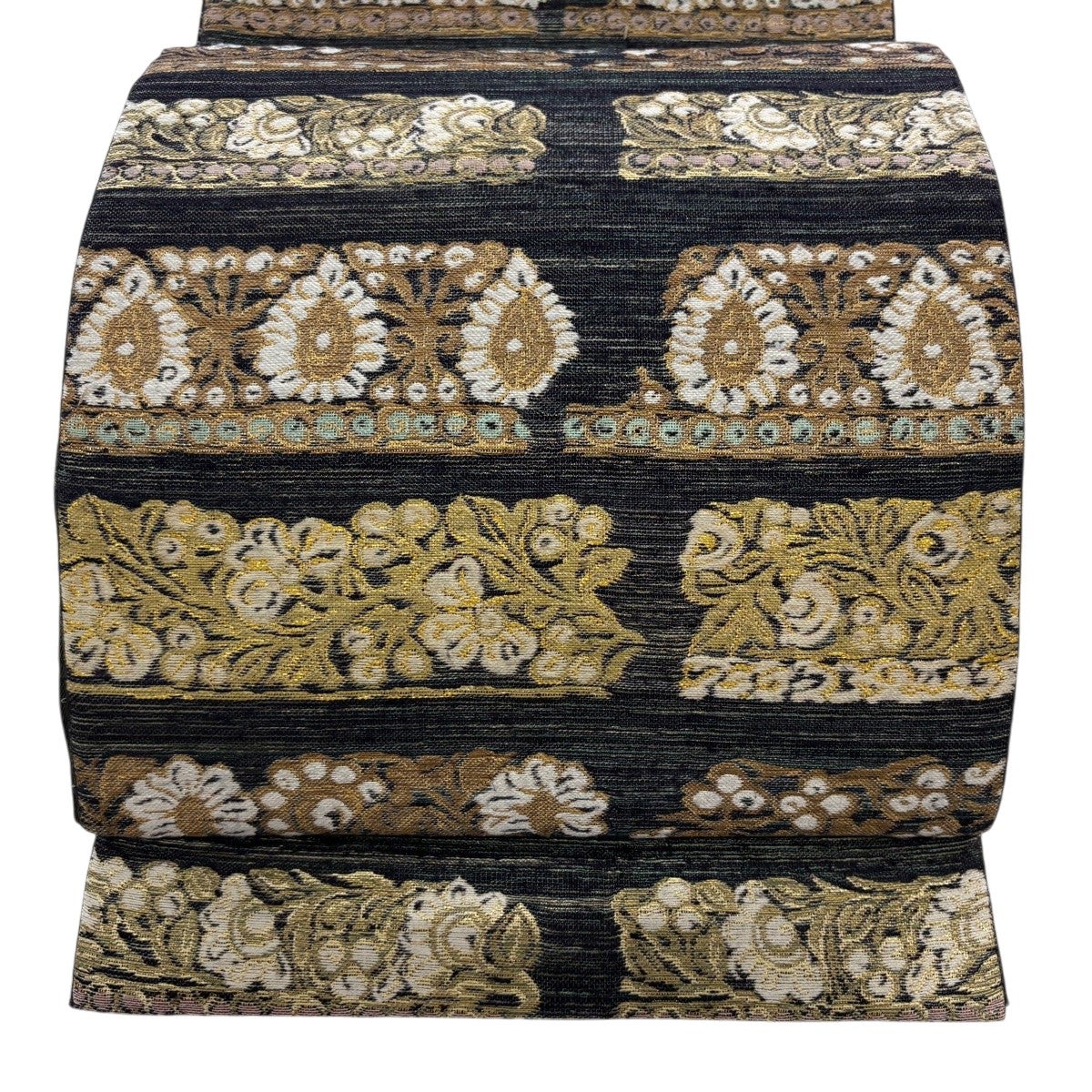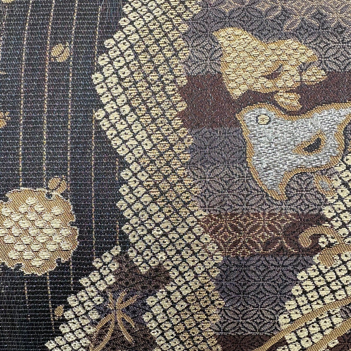 【美品】 袋帯 秀品 蜀江華文 金糸 箔 墨色 六通 正絹