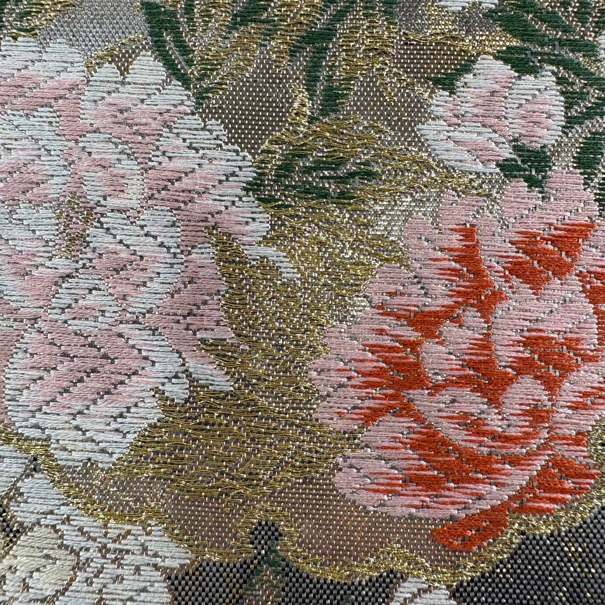 【美品】 袋帯 秀品 桜 花 金糸 箔 墨色 六通 正絹
