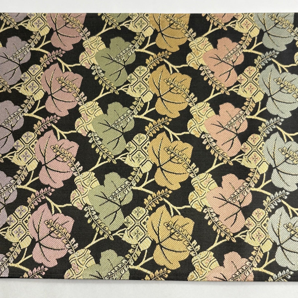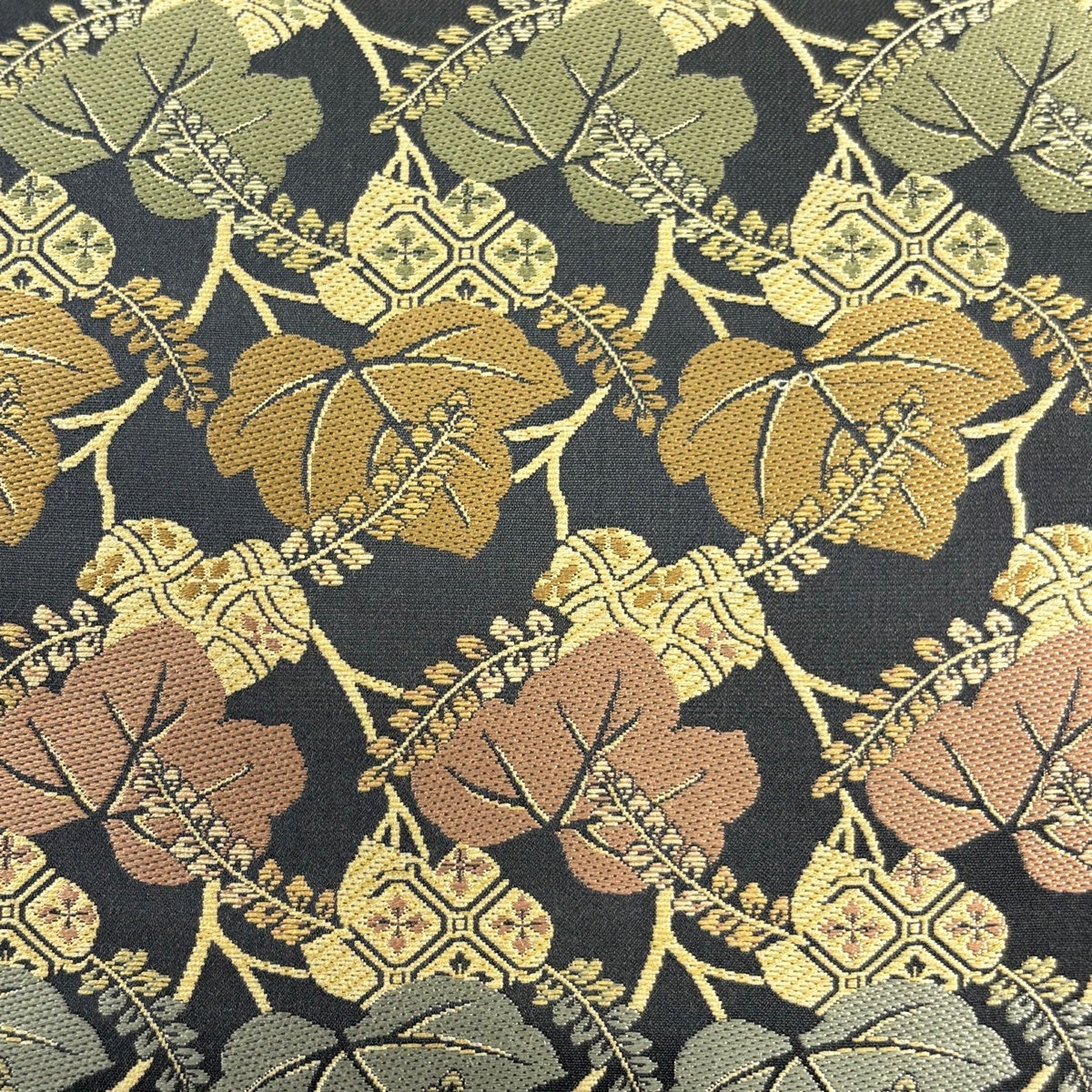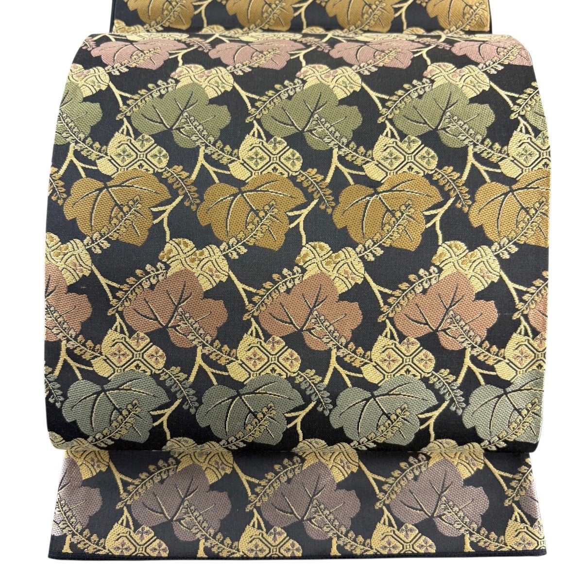 袋帯 秀品 夏帯 葉柄 幾何学 金糸 墨色 お太鼓柄 正絹