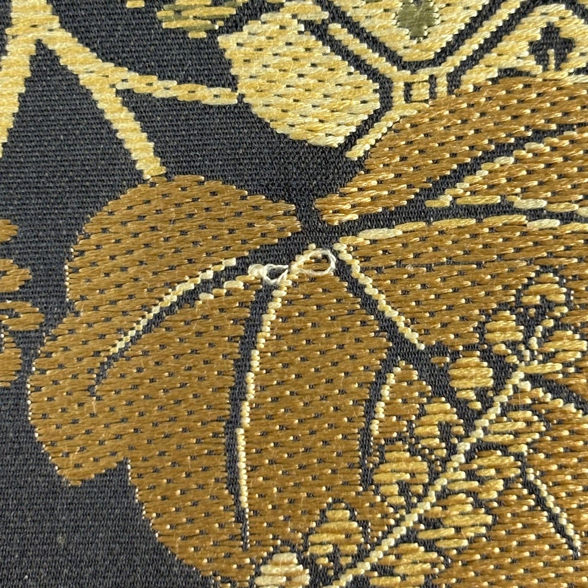 【美品】 袋帯 名品 花菱 立涌 金糸 箔 墨色 六通 正絹