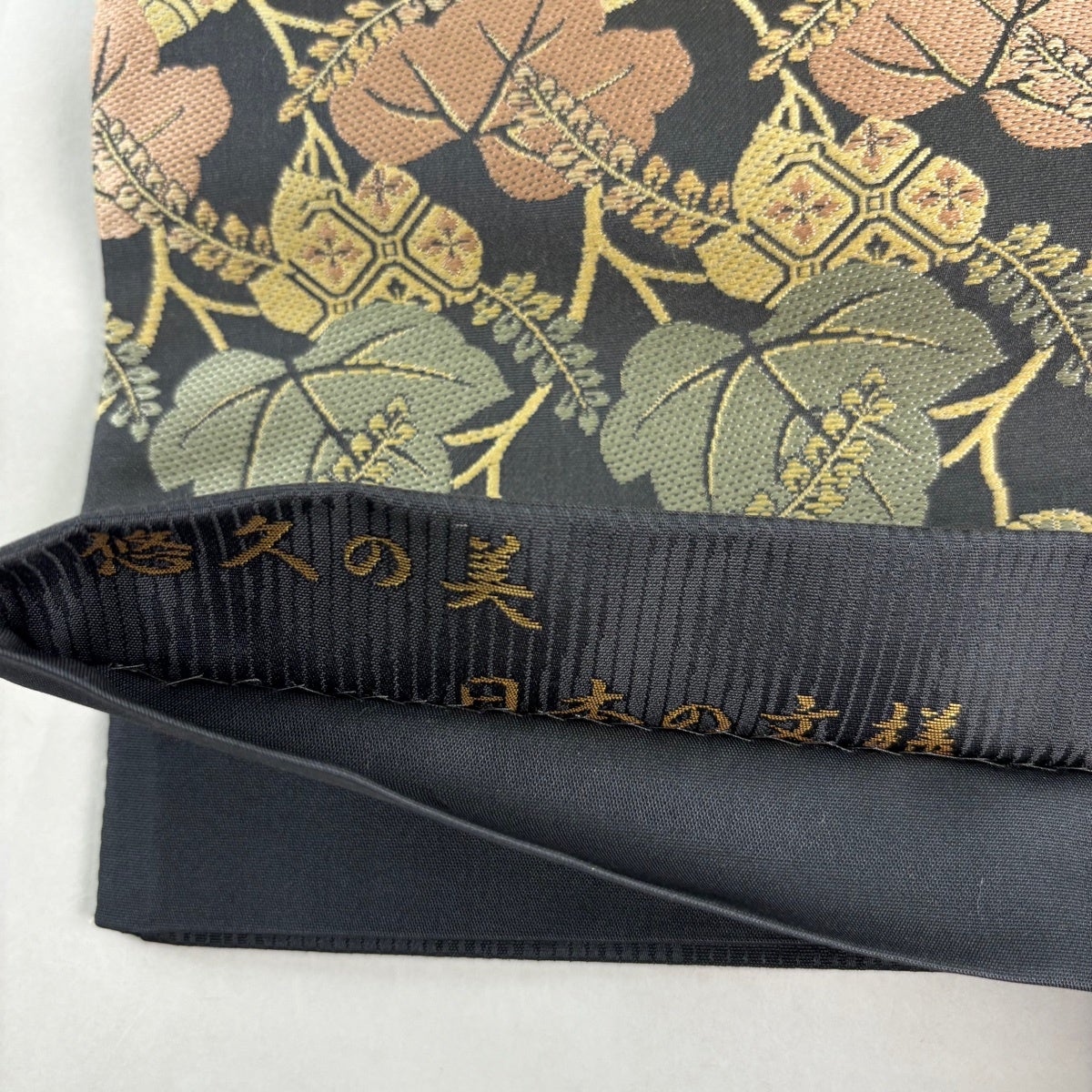 【美品】 袋帯 秀品 波 楓 箔 銀糸 墨色 六通 正絹