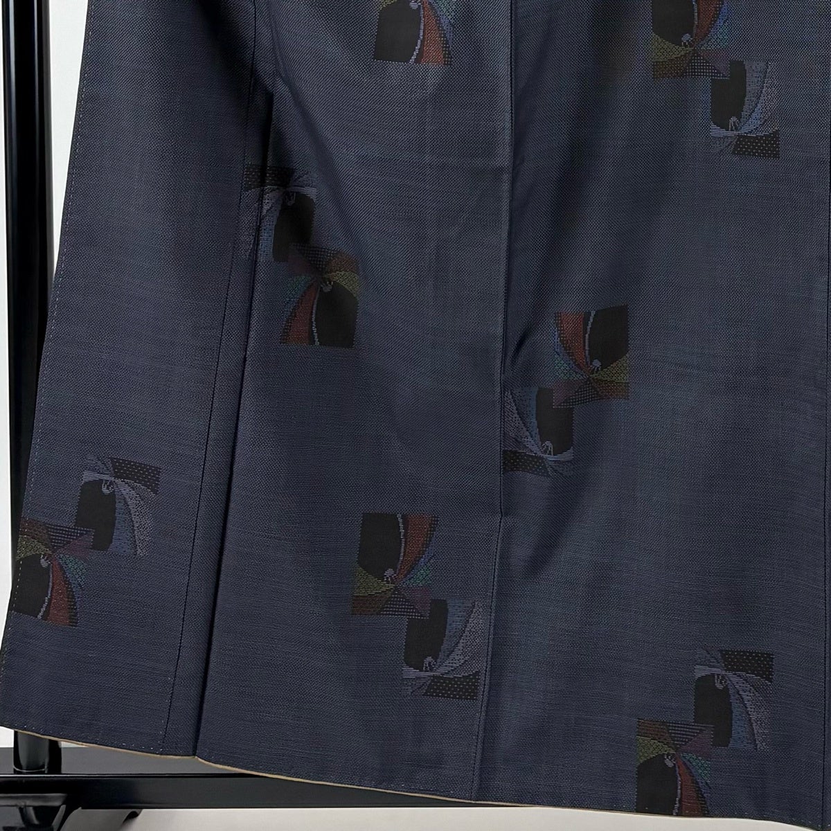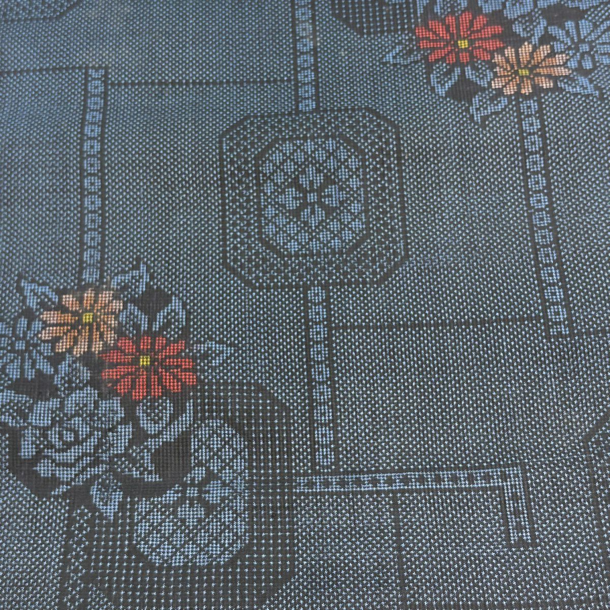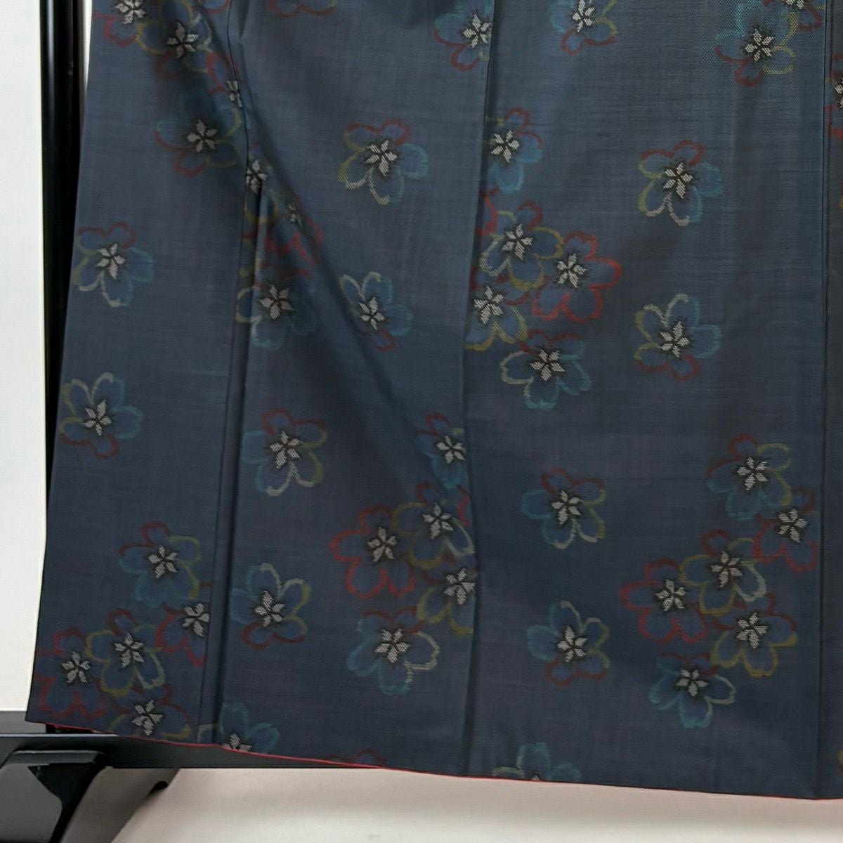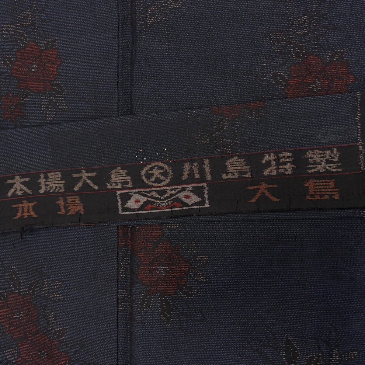 大島紬 身丈158.5cm 裄丈63.5cm S 袷 証紙あり 花 幾何学模様 紺色 正絹 秀品