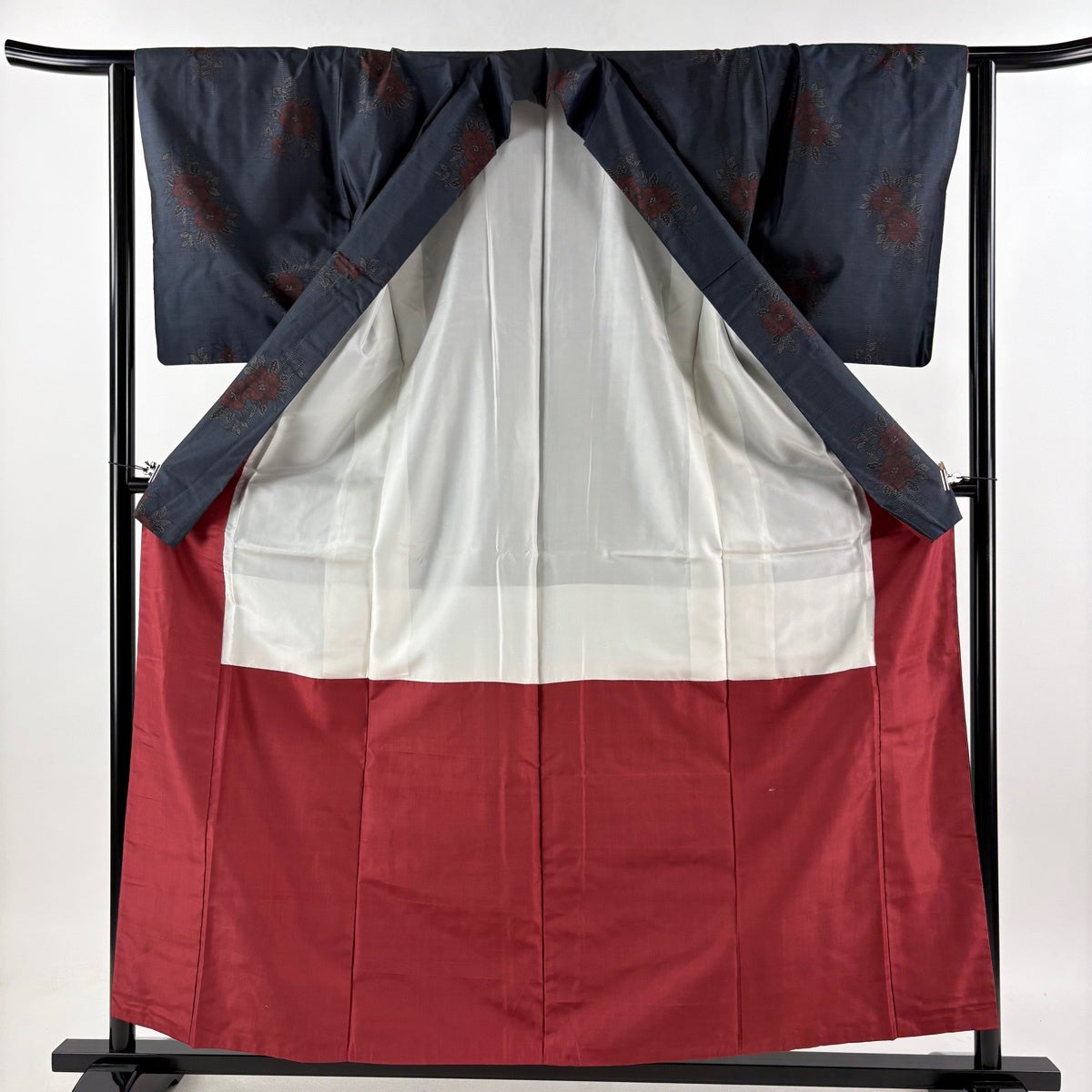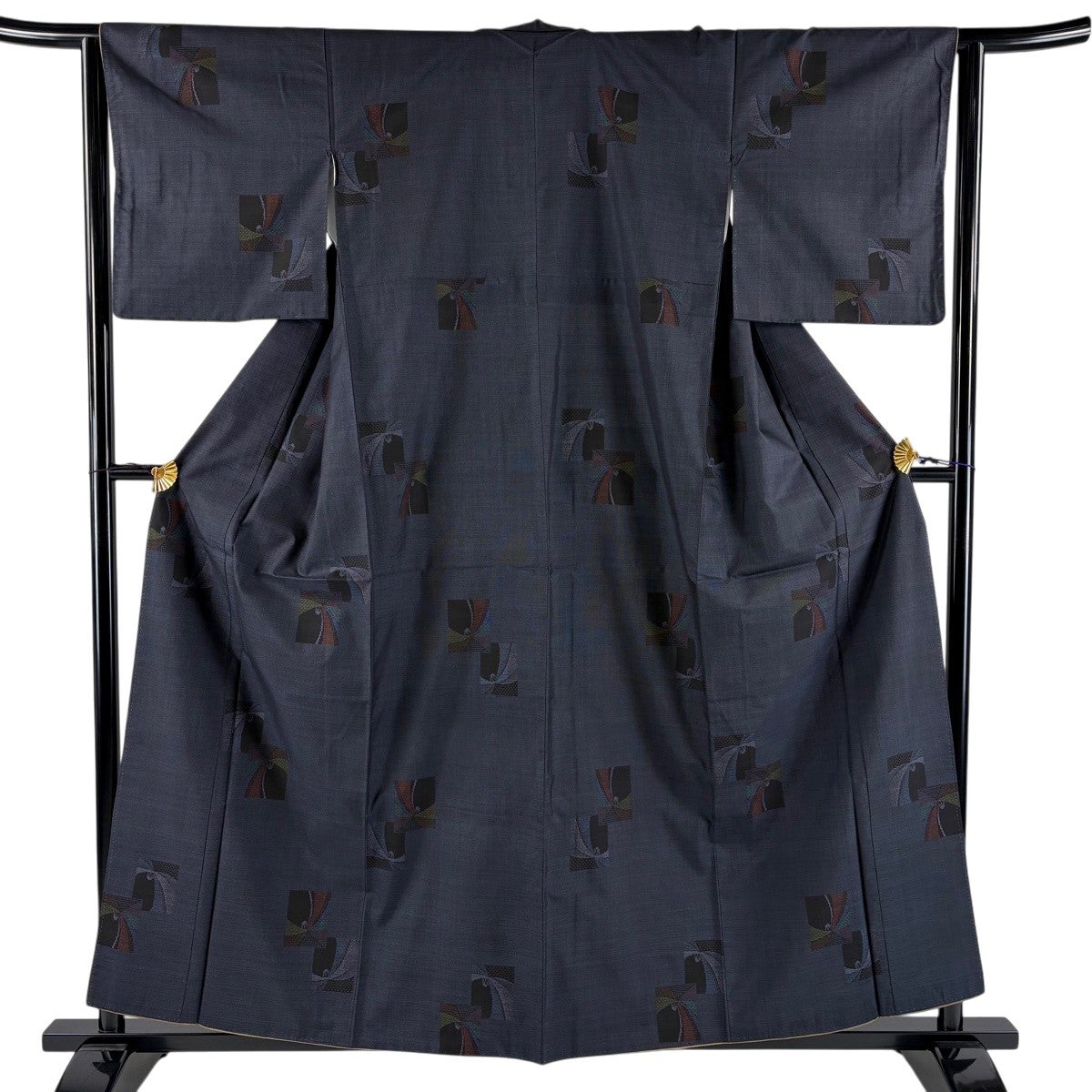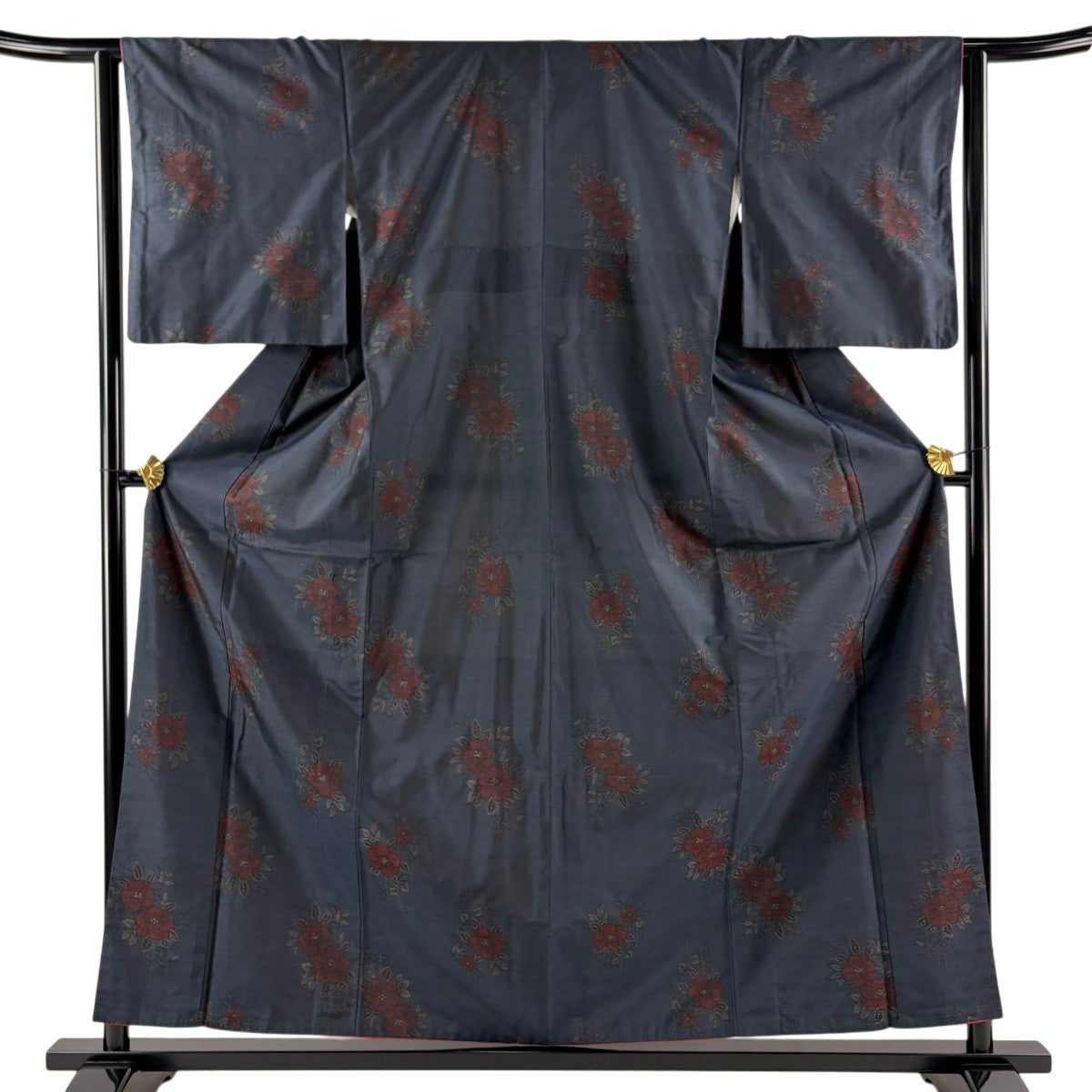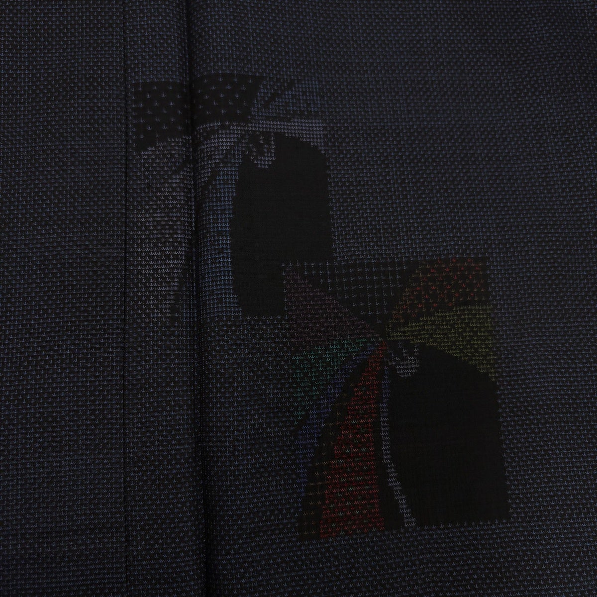 大島紬 身丈158.5cm 裄丈63.5cm S 袷 証紙あり 花 幾何学模様 紺色 正絹 秀品