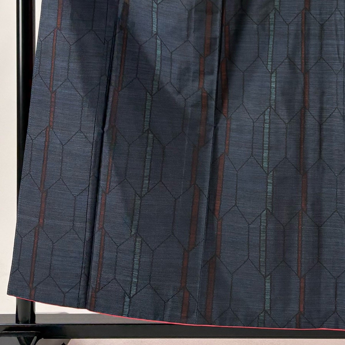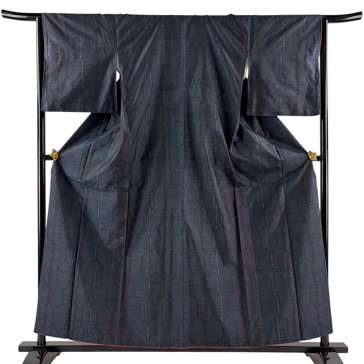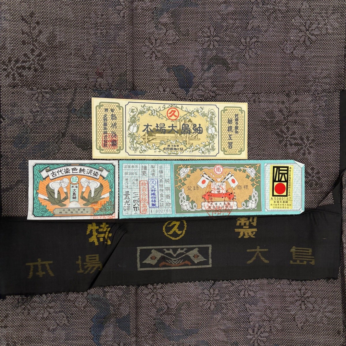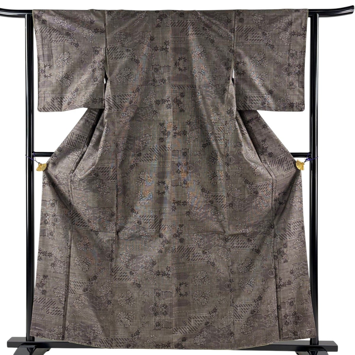 大島紬 身丈160cm 裄丈63cm S 袷 純泥染 証紙あり 竹 麻の葉 焦茶色 正絹 名品