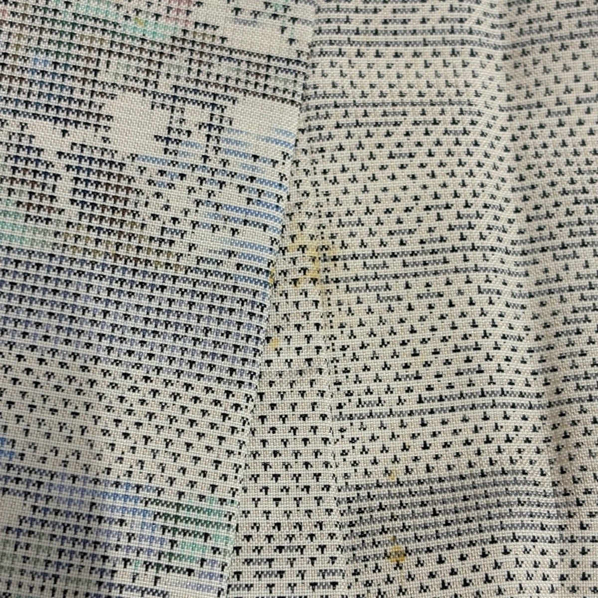大島紬 身丈165.5cm 裄丈66cm M 袷 やまと 証紙あり 幾何学 黒灰 正絹 秀品