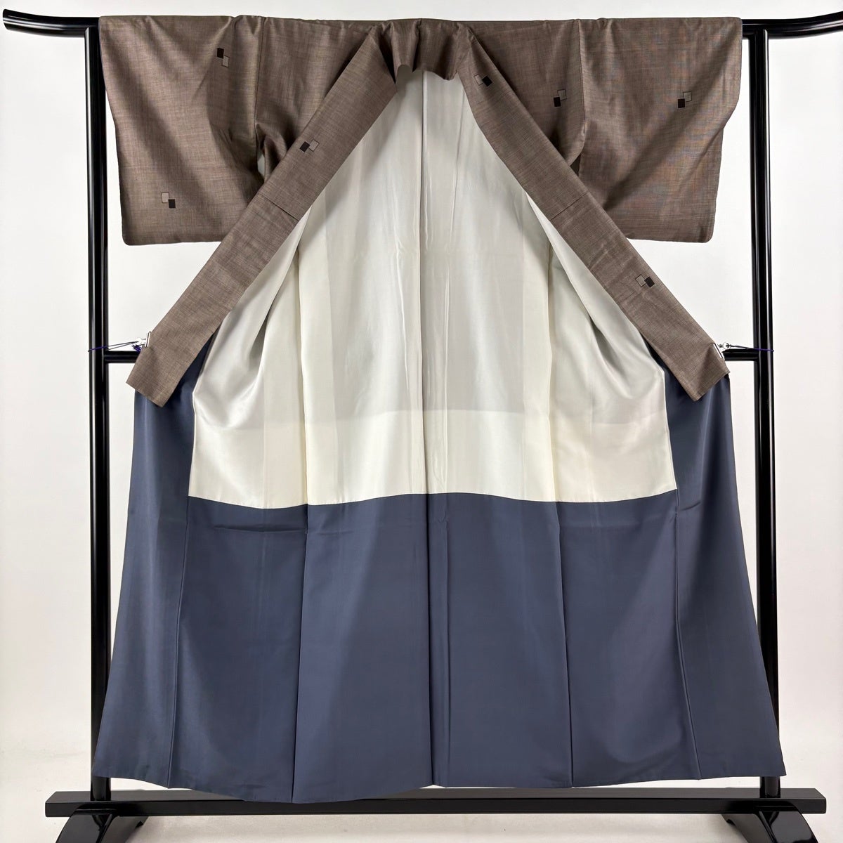 大島紬 身丈156cm 裄丈62.5cm S 袷 純泥染 証紙あり 幾何学 焦茶色 正絹 秀品