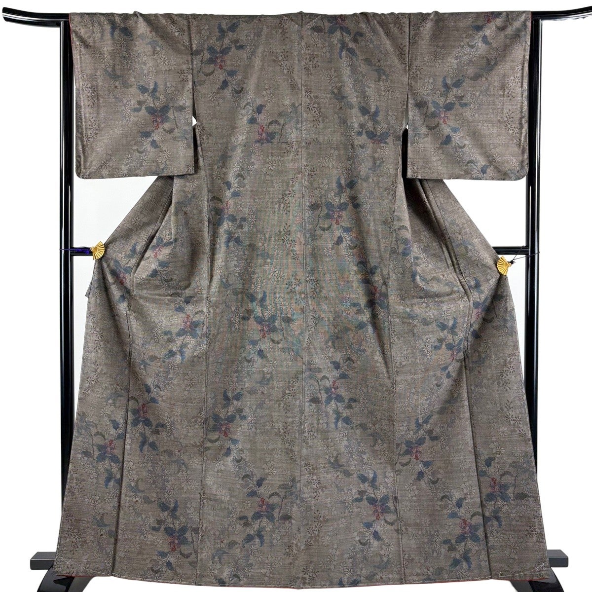 【美品】 大島紬 身丈159cm 裄丈66cm M 袷 純泥 証紙あり 枝花 焦茶色 正絹 秀品