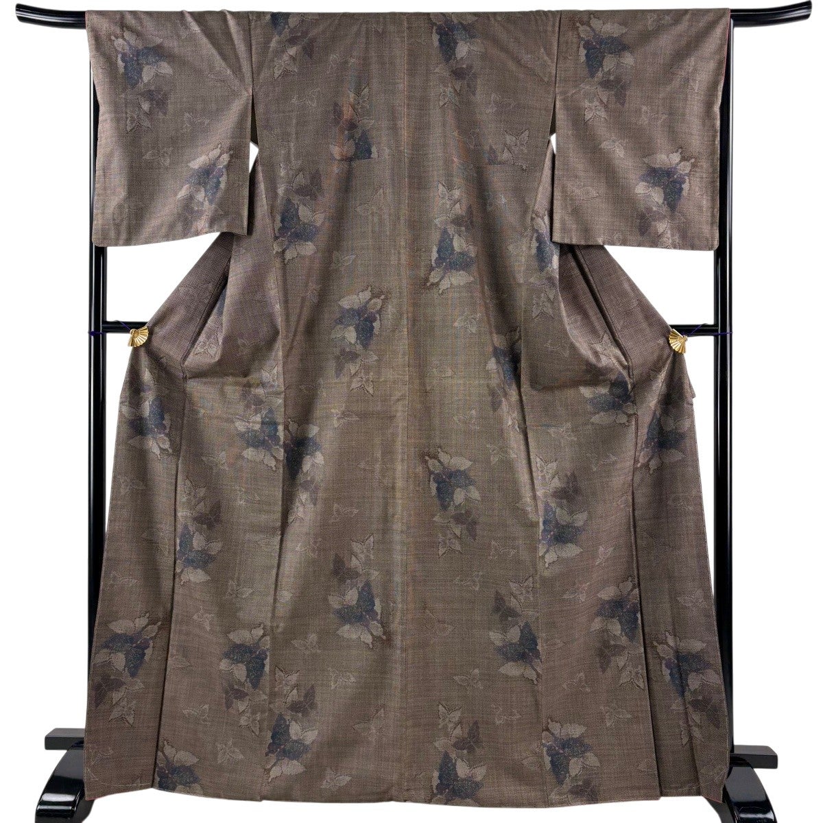 大島紬 身丈169cm 裄丈67cm M 袷 純泥染 やまと 証紙あり 蝶 焦茶色 正絹 秀品