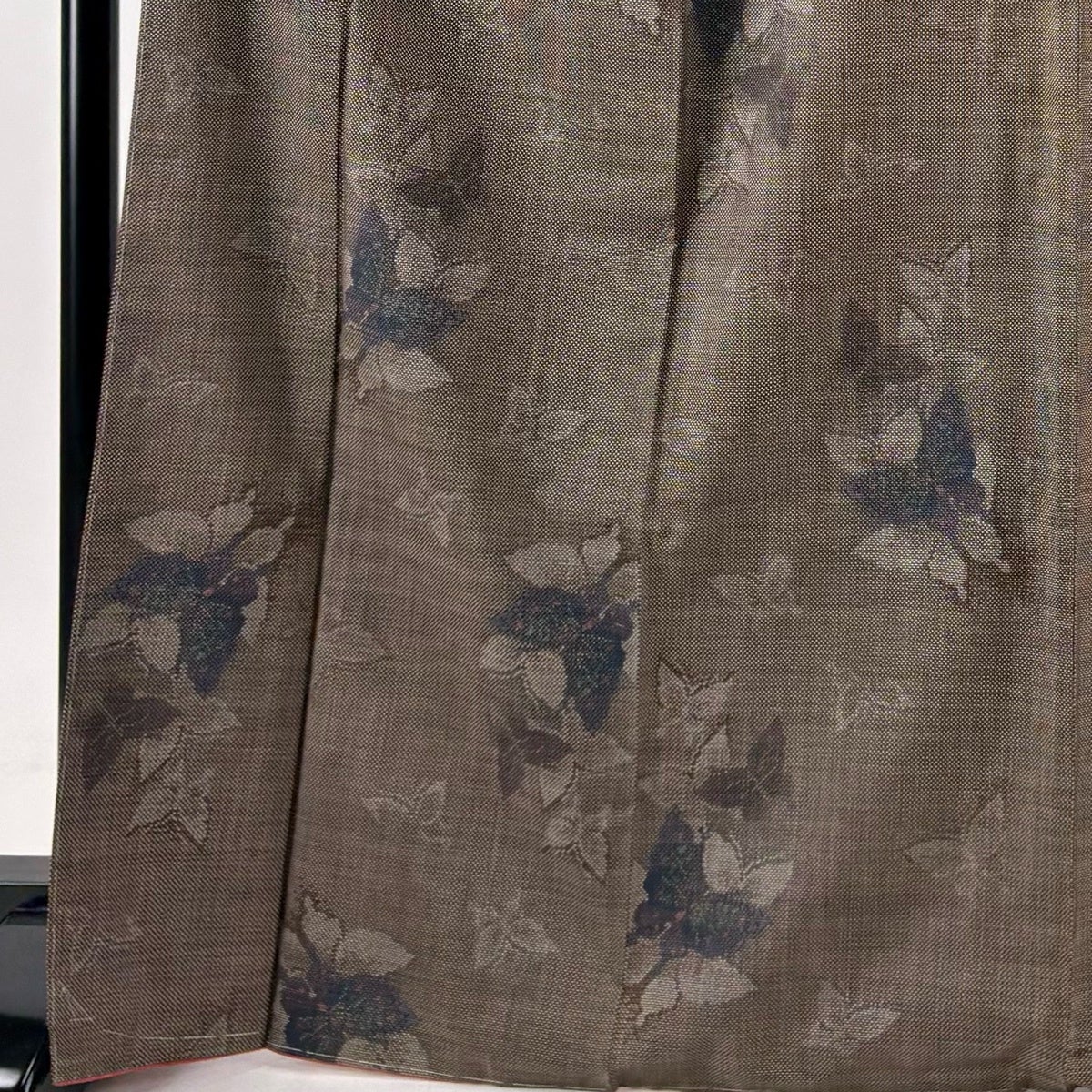 【美品】 大島紬 身丈164cm 裄丈65cm M 袷 純泥染 証紙あり 草花 焦茶色 正絹 秀品