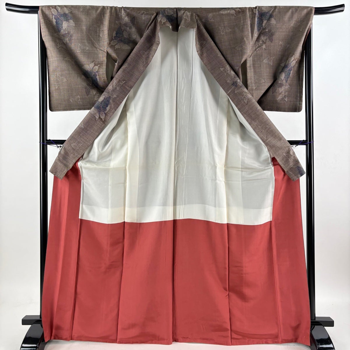 50%OFF 大島紬 身丈165cm 裄丈66cm M 袷 草花 菱 焦茶色 正絹 名品 K50