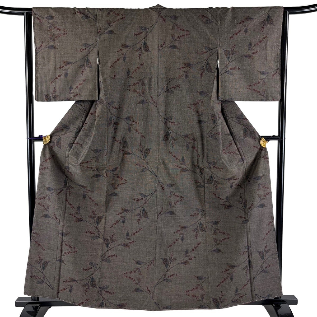 大島紬 身丈166cm 裄丈66.5cm M 袷 純泥染 証紙あり 草花 焦茶色 正絹 秀品