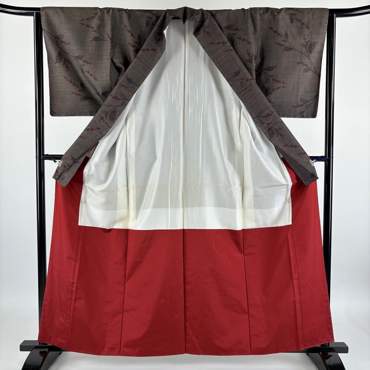 大島紬 身丈160.5cm 裄丈64cm M 袷 純泥染 証紙あり 枝花 焦茶色 正絹 秀品