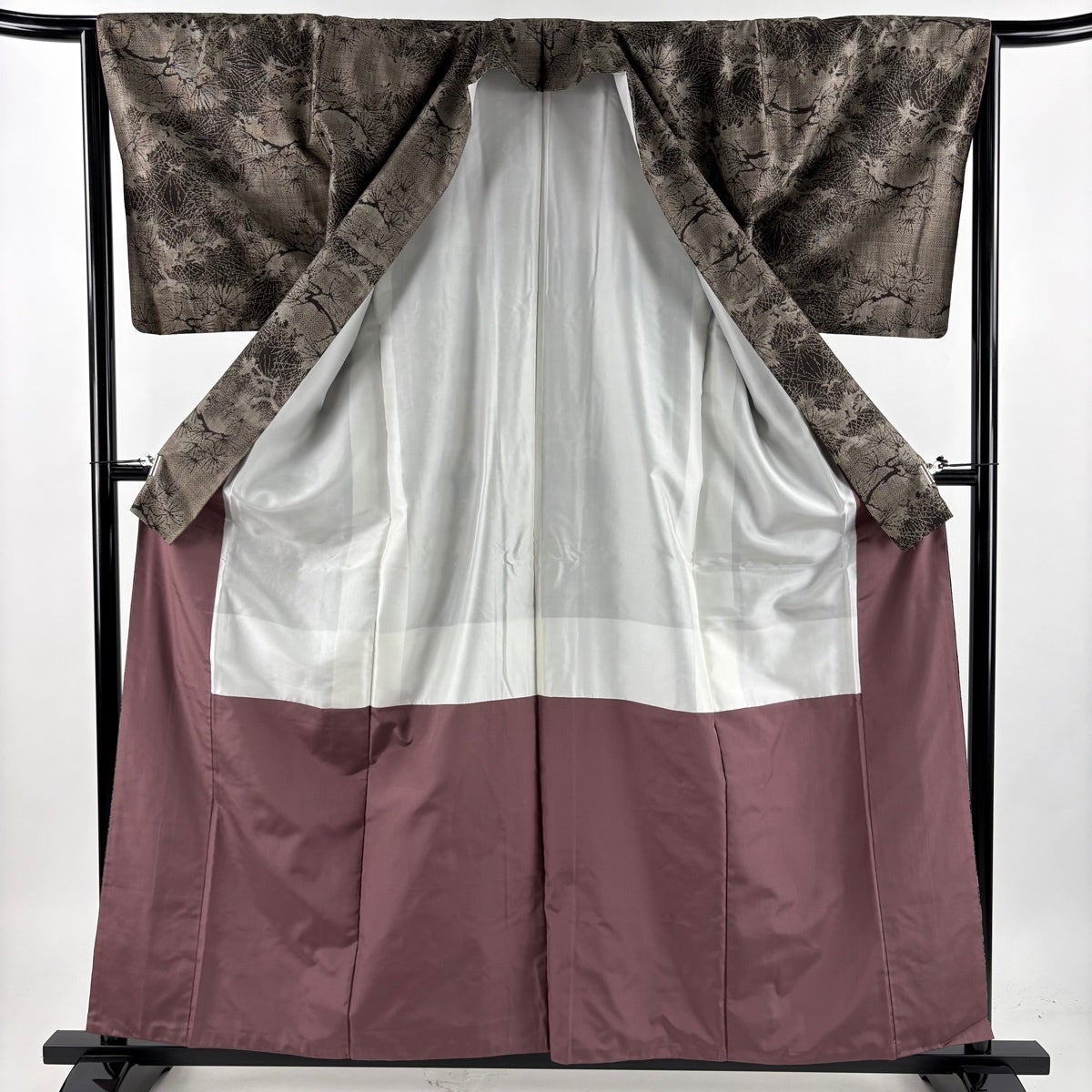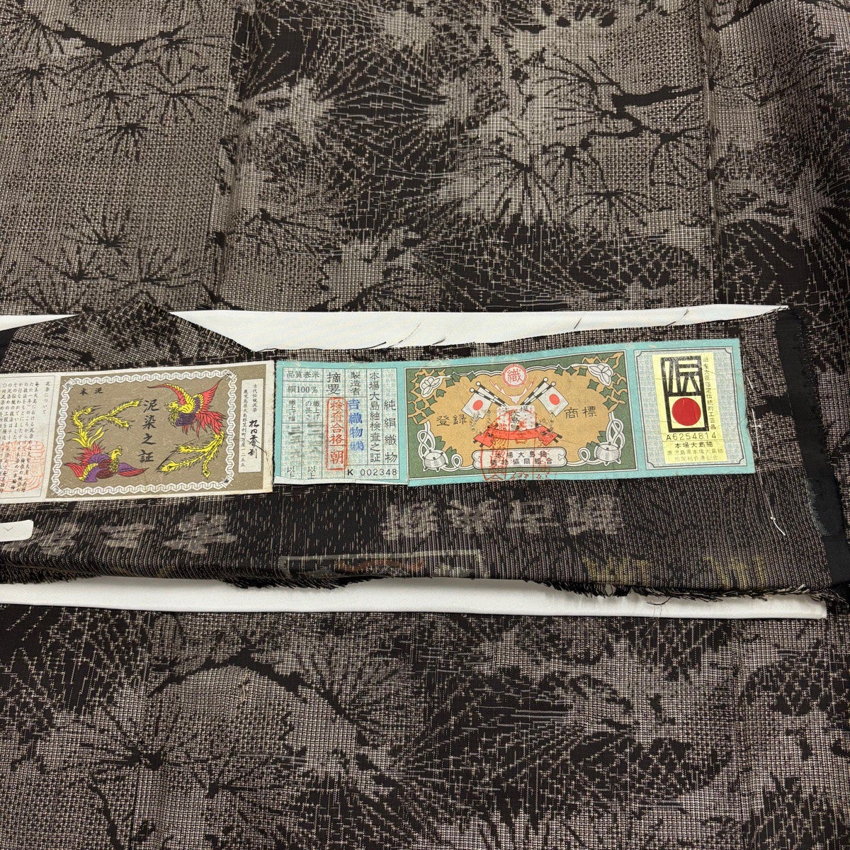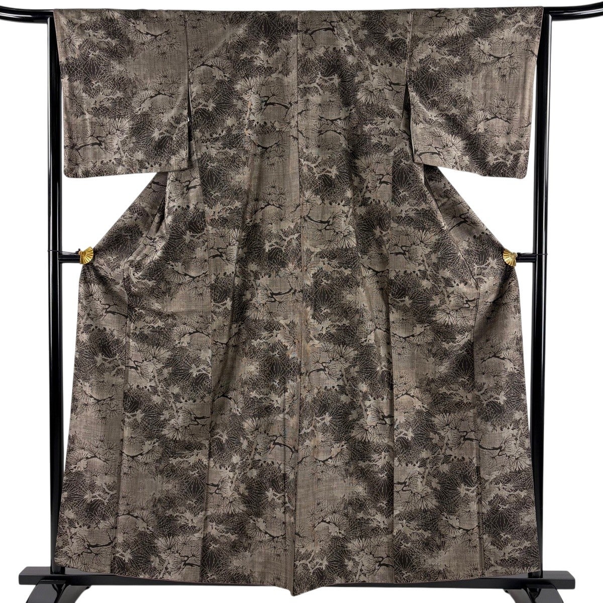 大島紬 身丈165.5cm 裄丈66.5cm M 袷 証紙あり 庭園 樹木 純泥染 灰茶 正絹 名品