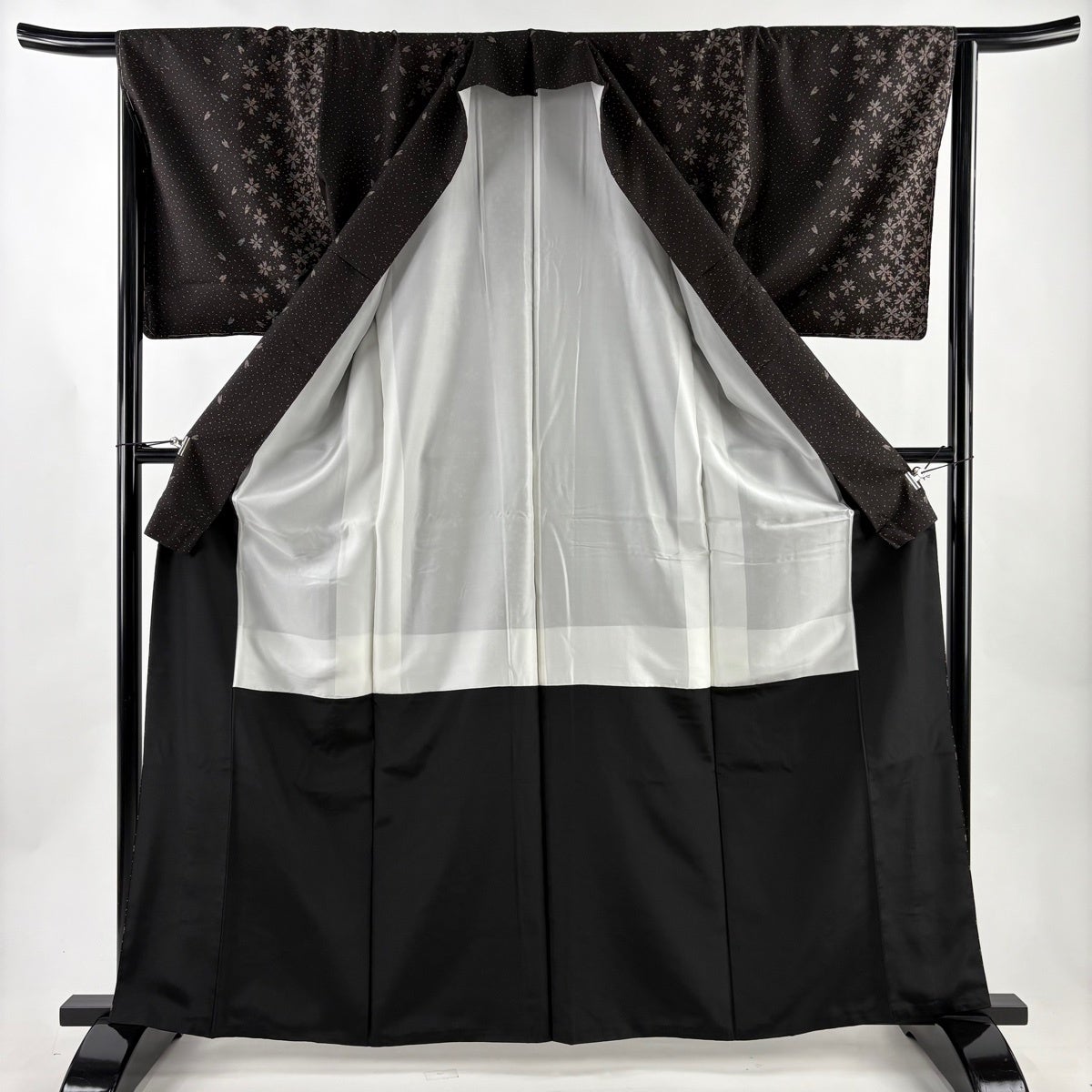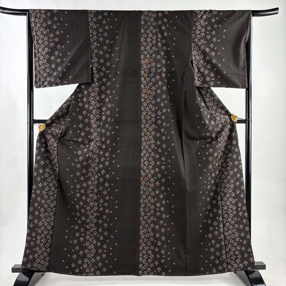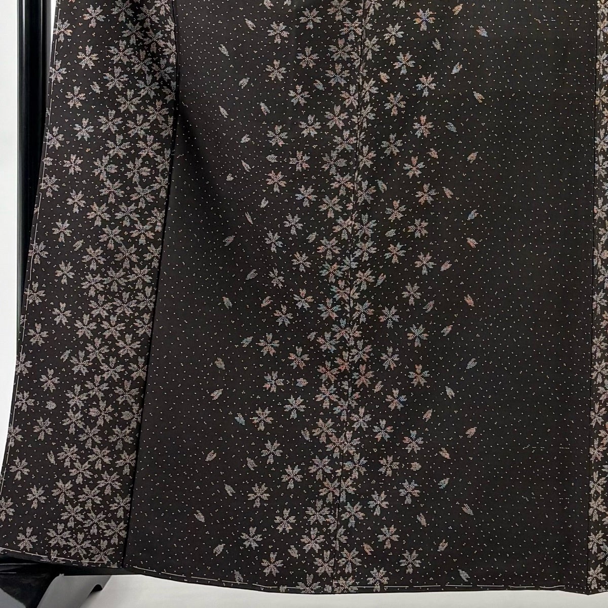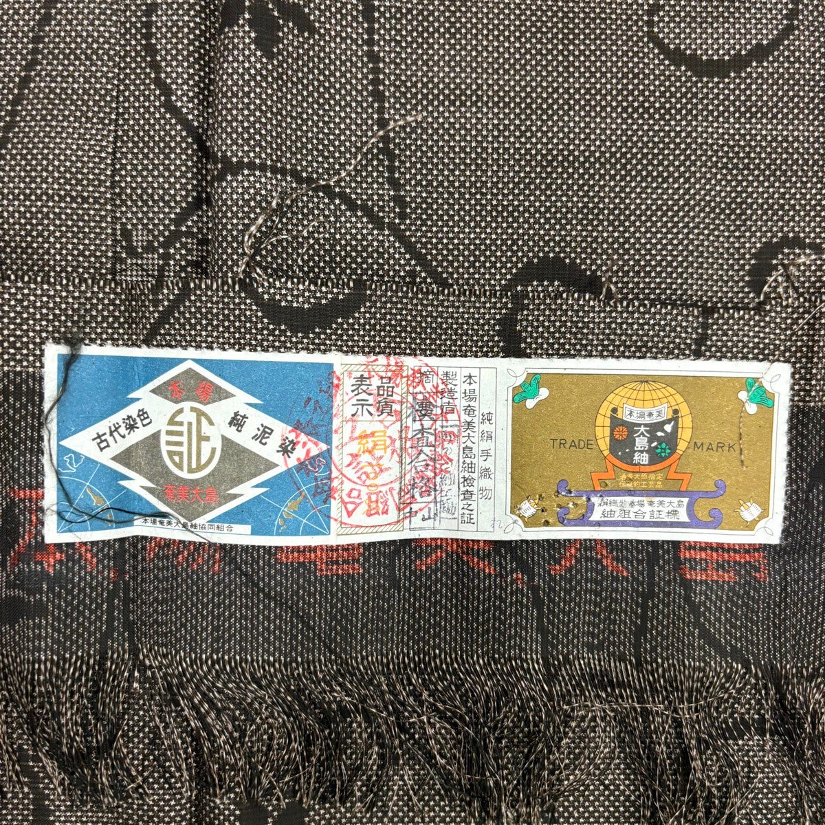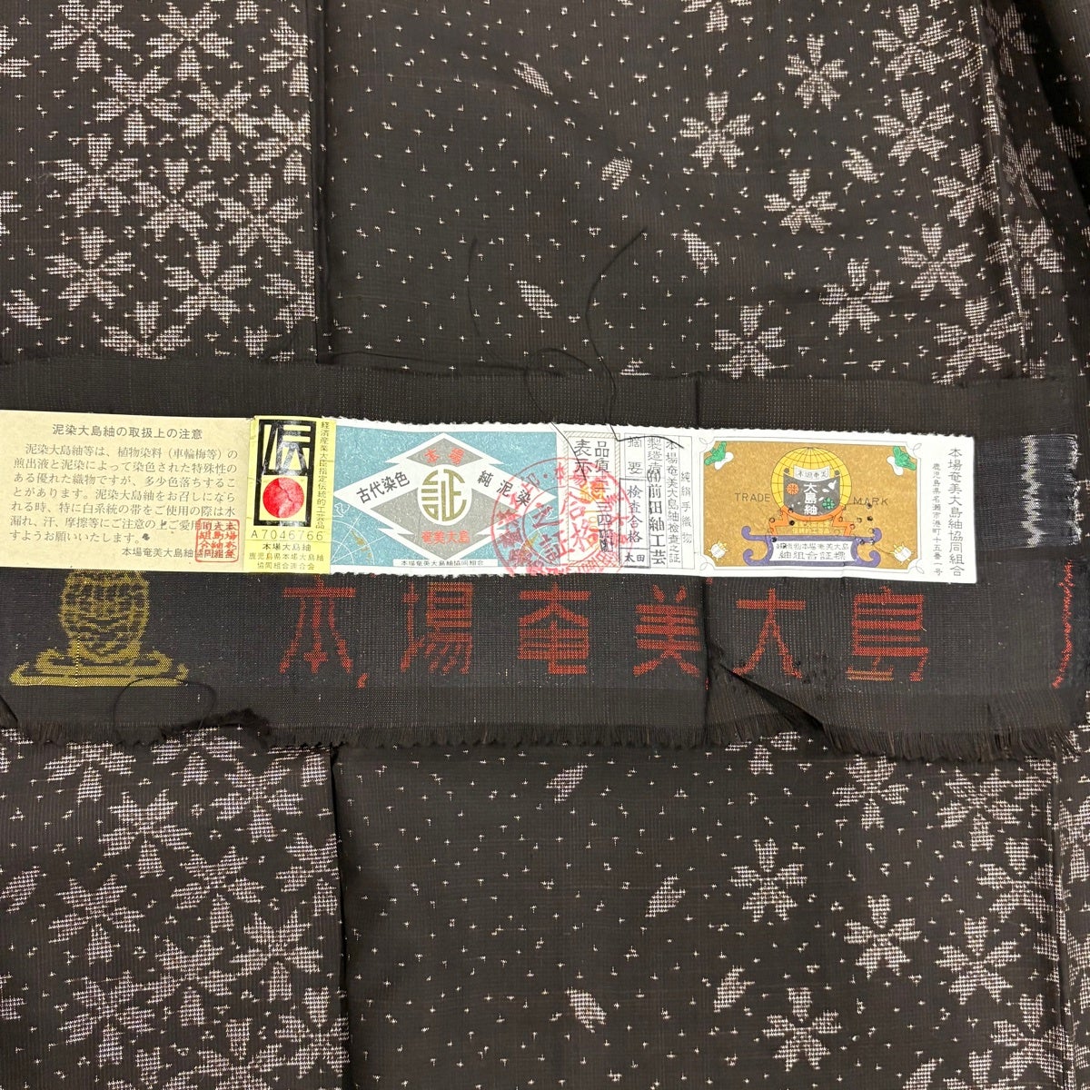 【在庫一掃】 大島紬 身丈159cm 裄丈65cm M 袷 純泥染 証紙あり 笹 枝花 焦茶色 正絹 名品
