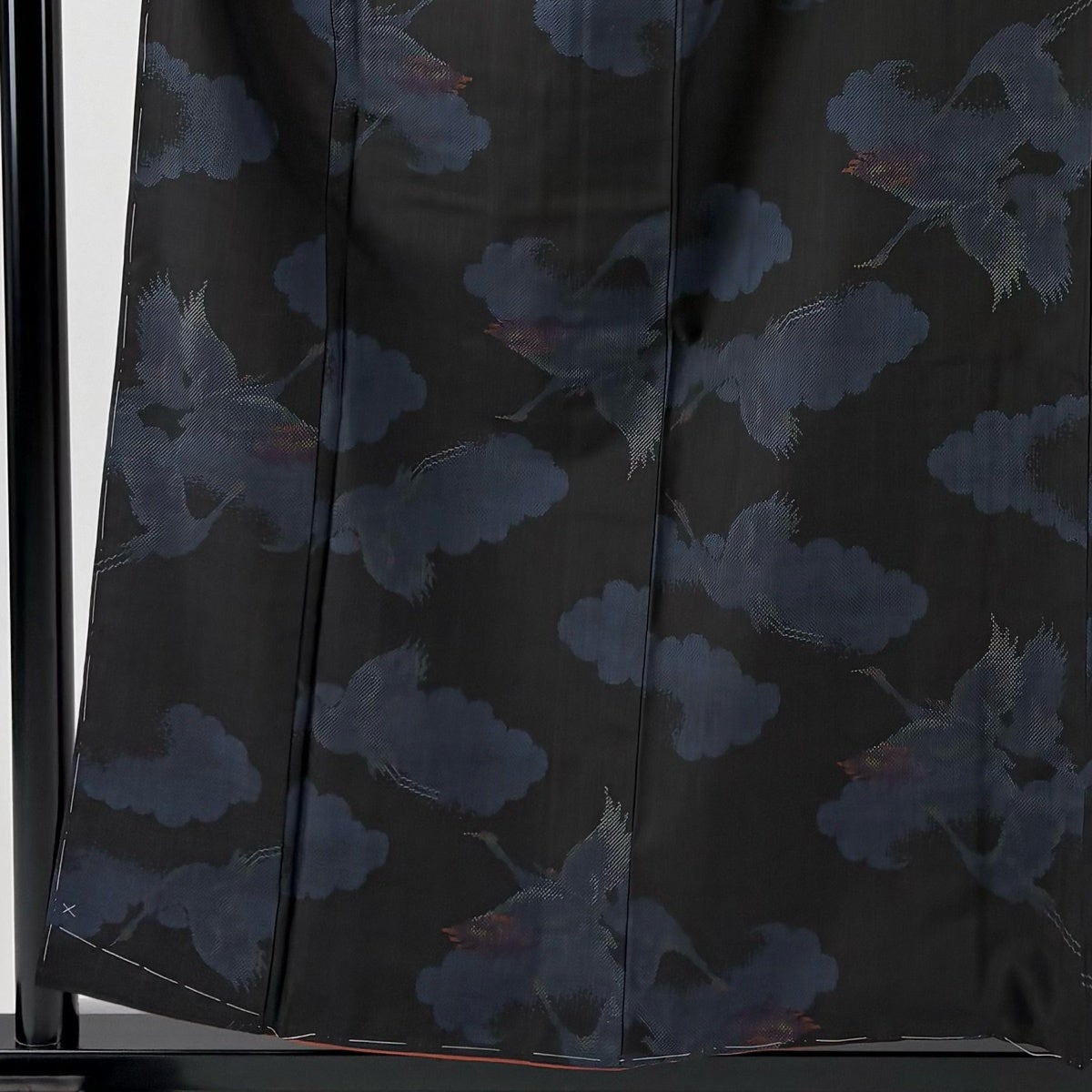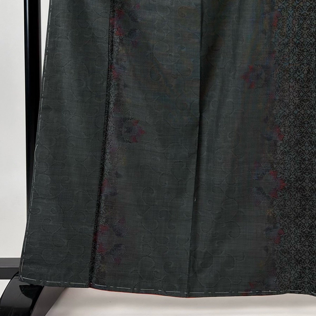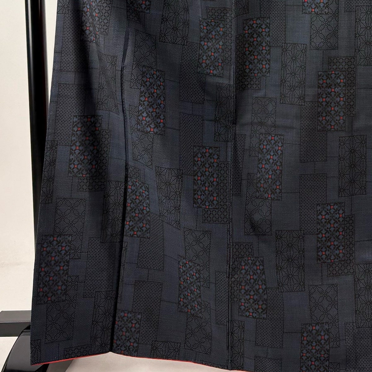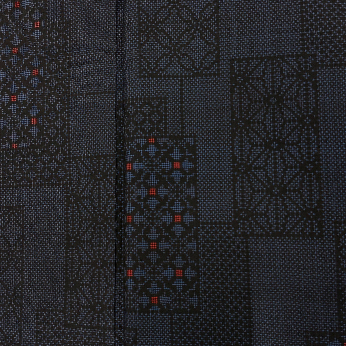 50%OFF 大島紬 身丈161.5cm 裄丈64cm M 袷 証紙あり 麻の葉 黒灰 正絹 名品 K50