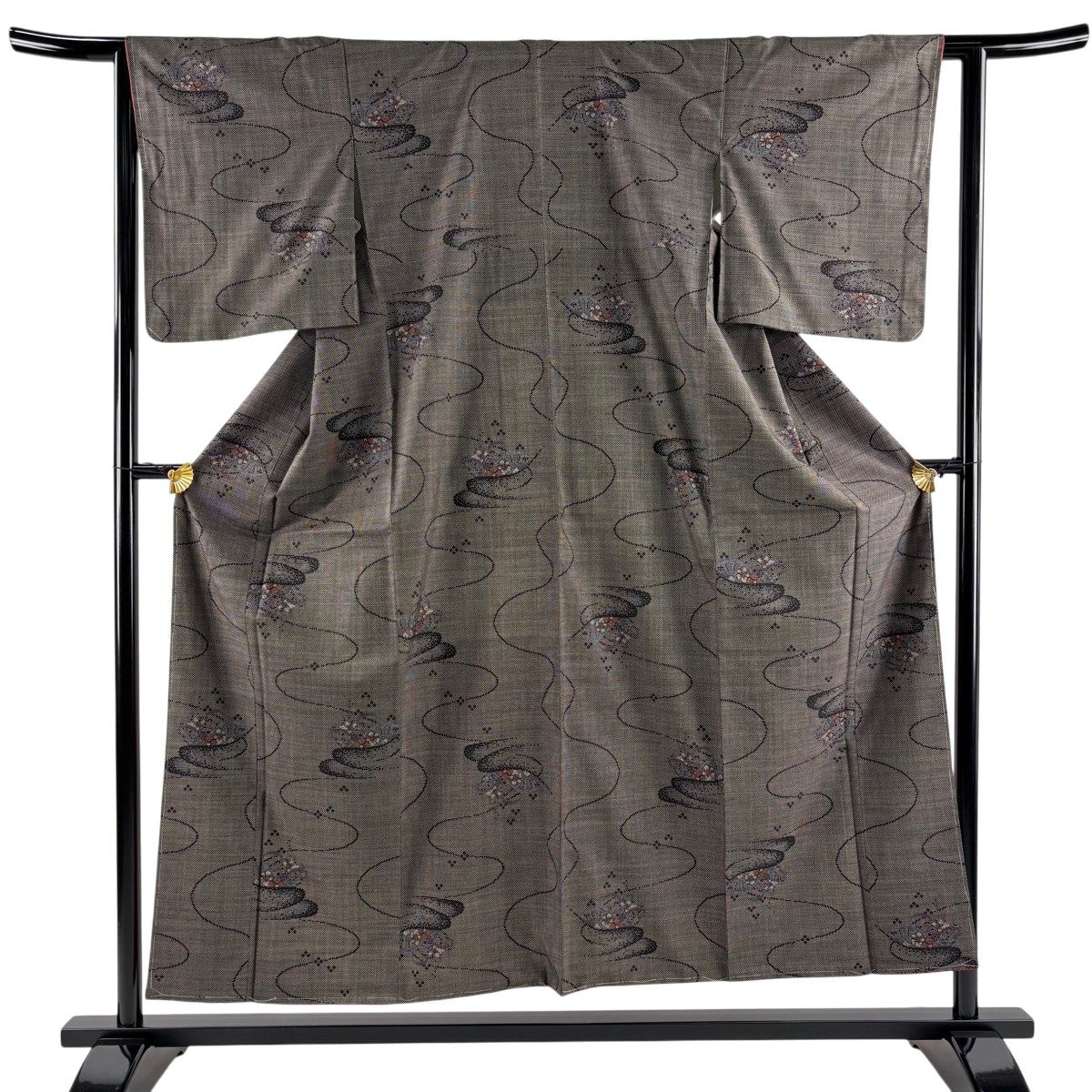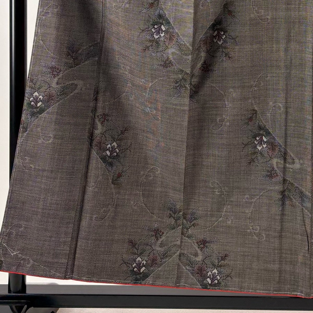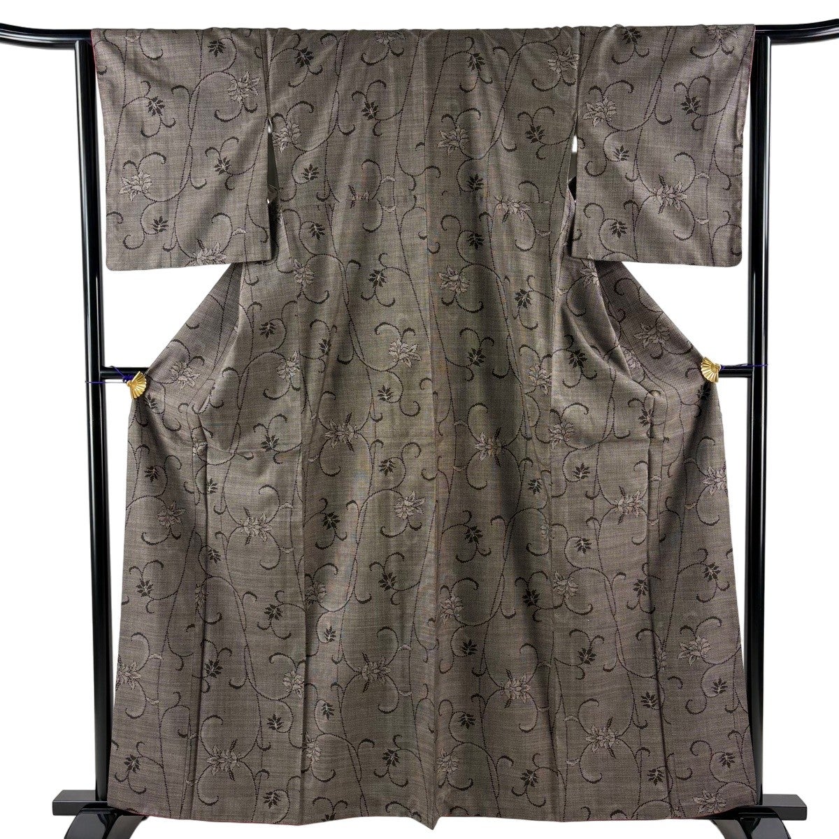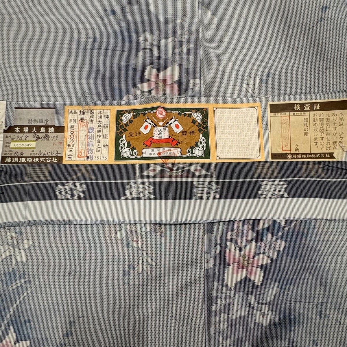 30%OFF 大島紬 身丈166.5cm 裄丈66.5cm M 袷 証紙あり 草花 華文 灰色 正絹 名品 K30