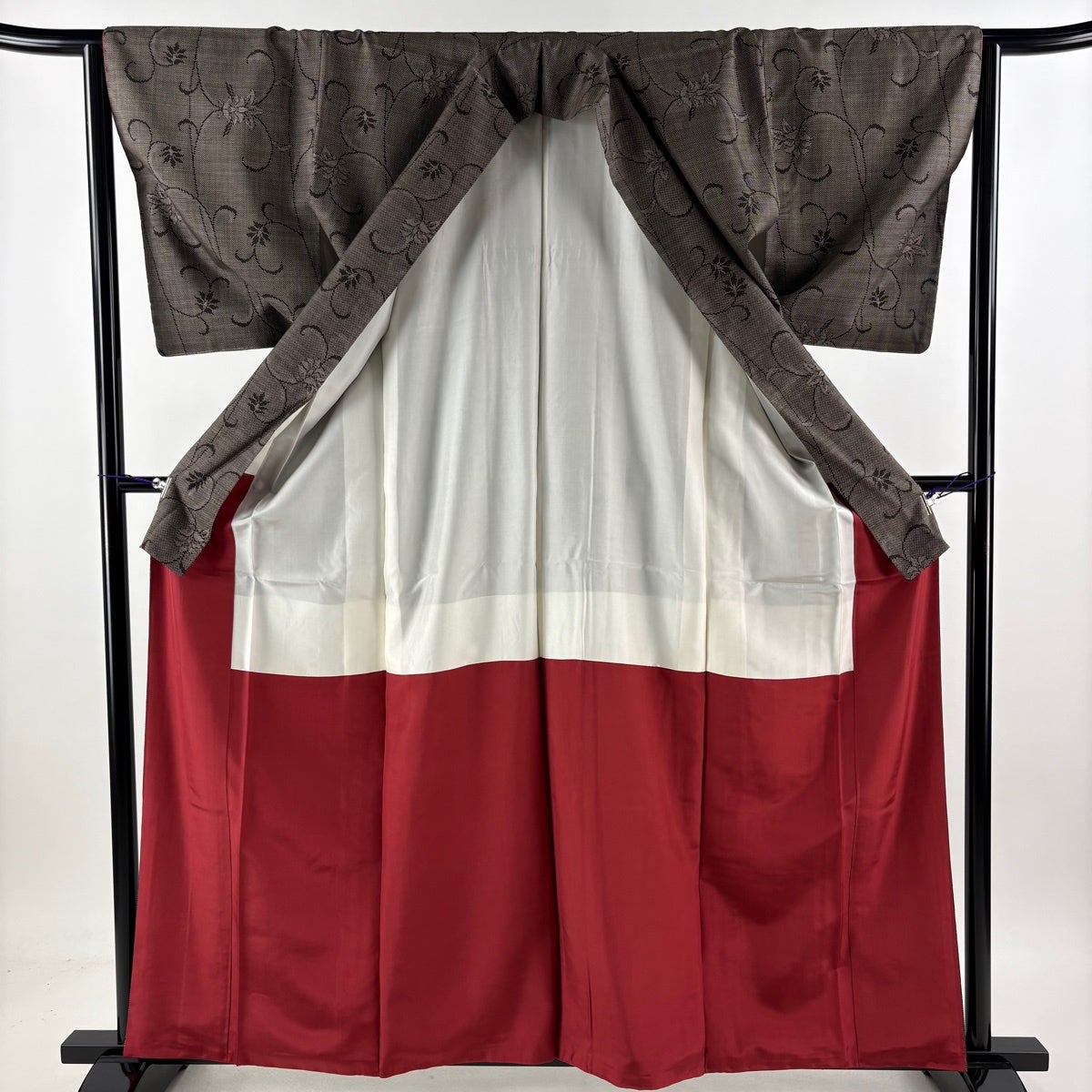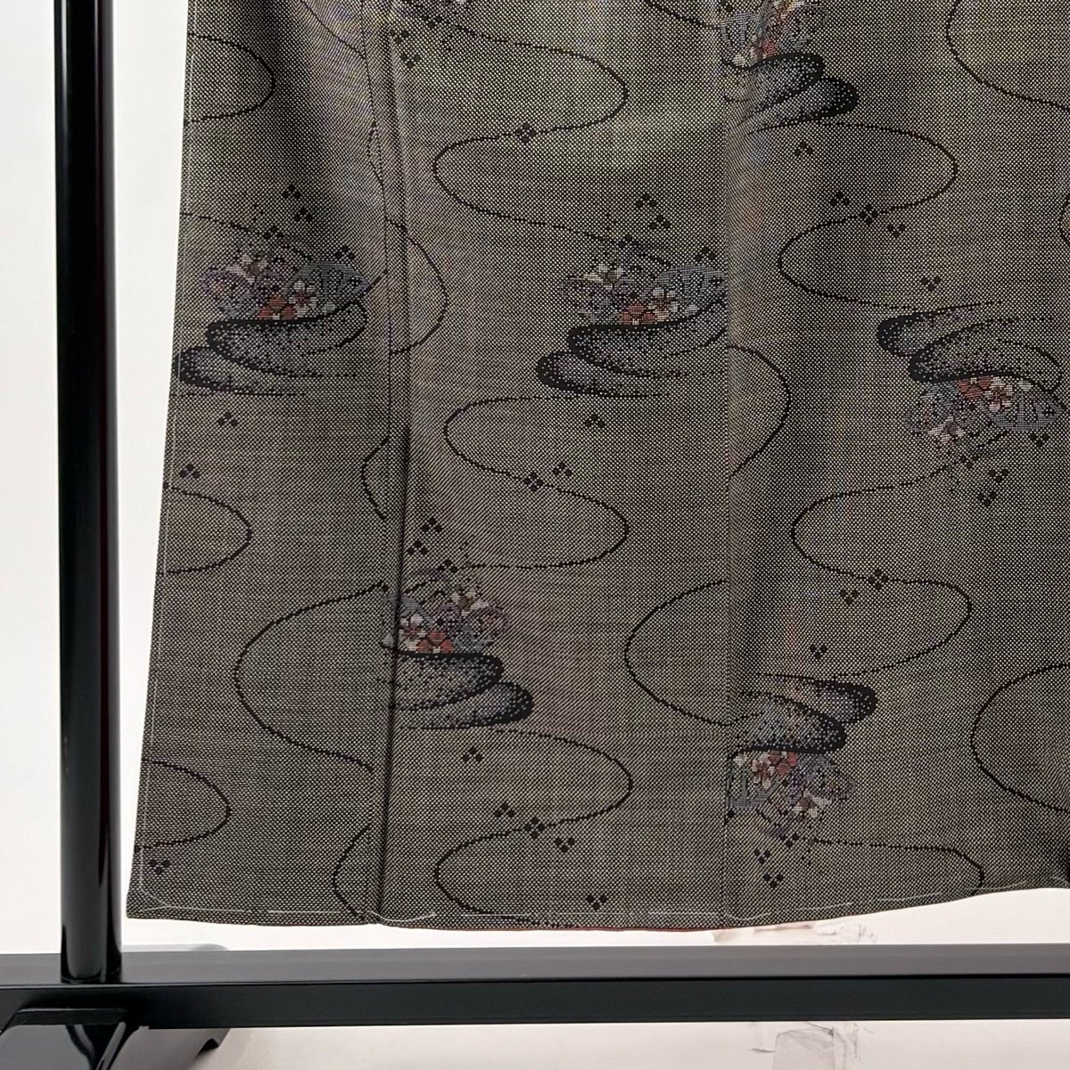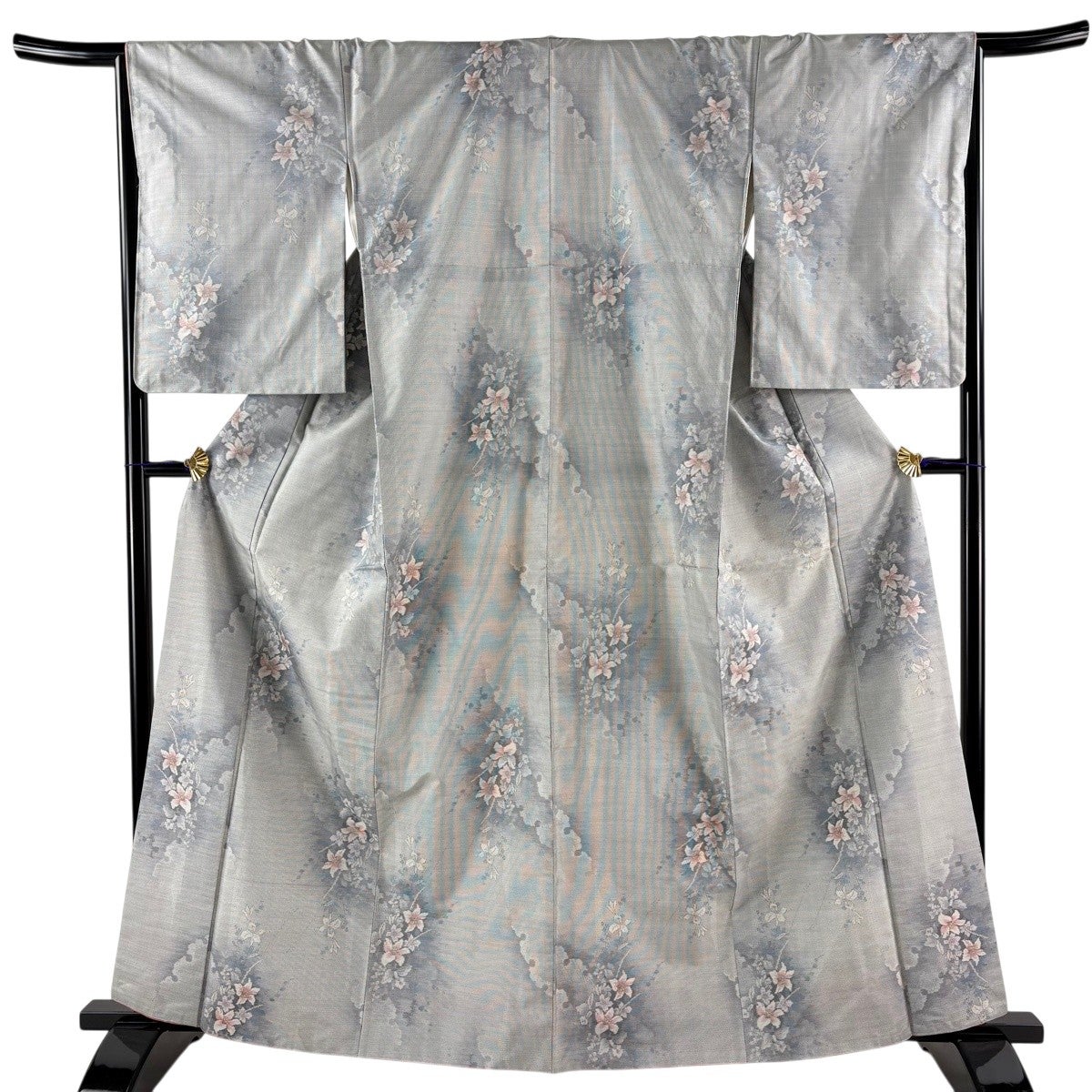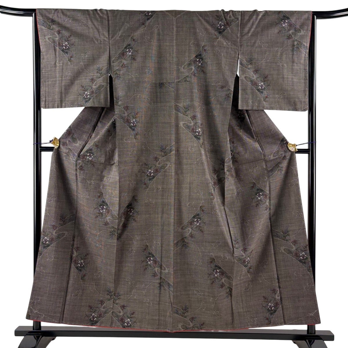 30%OFF 大島紬 身丈166.5cm 裄丈66.5cm M 袷 証紙あり 草花 華文 灰色 正絹 名品 K30