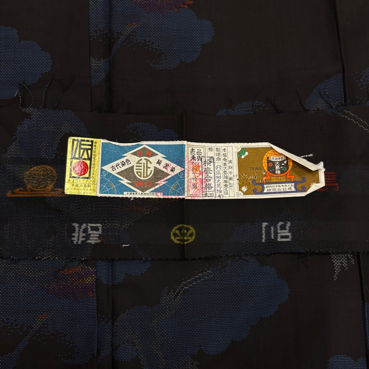 30%OFF 反物 秀品 小紋 大島紬地 落款 証紙 萩 墨色 正絹 K30