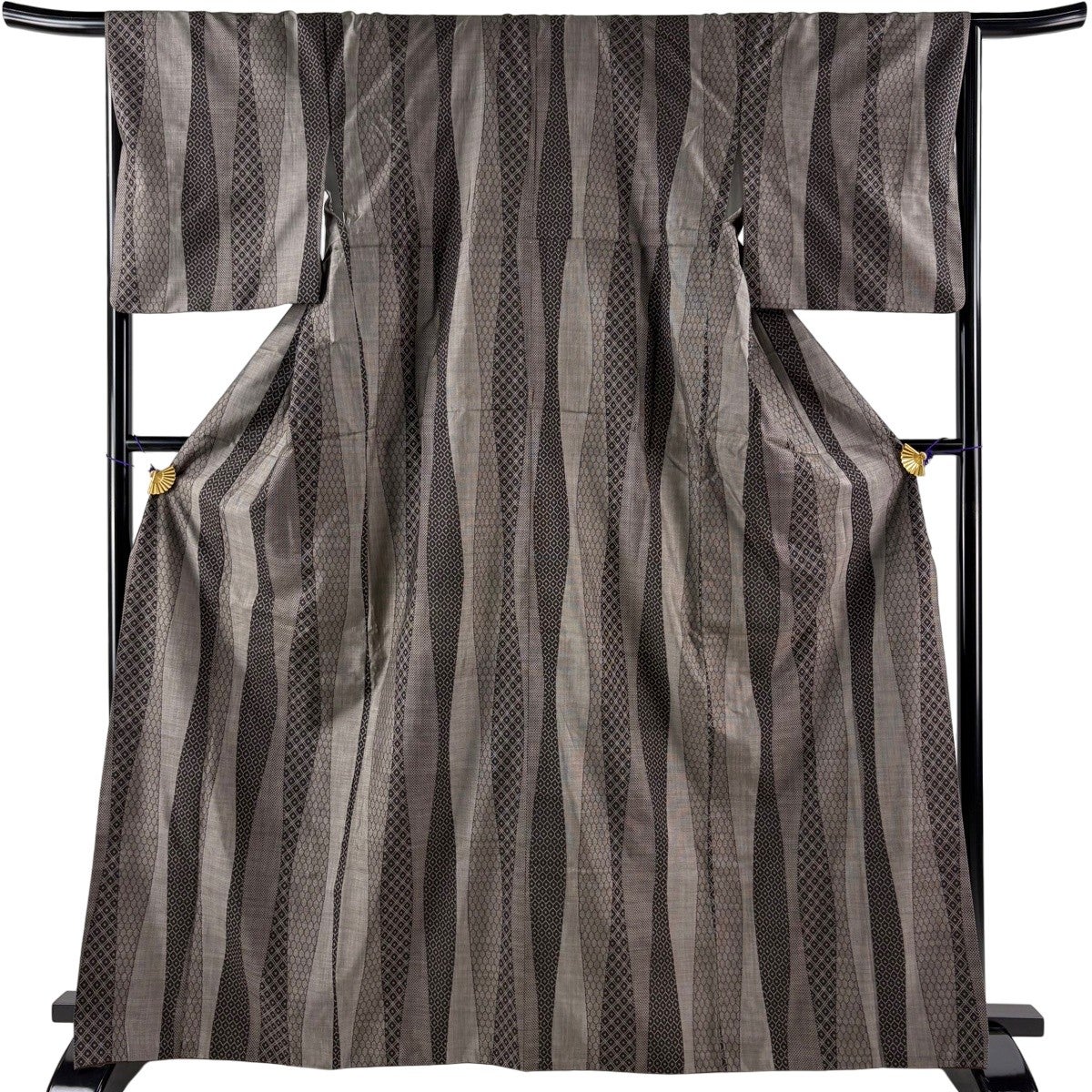 30%OFF 大島紬 身丈157cm 裄丈64cm M 単衣 都城 証紙あり 斜縞 灰色 正絹 名品 K30