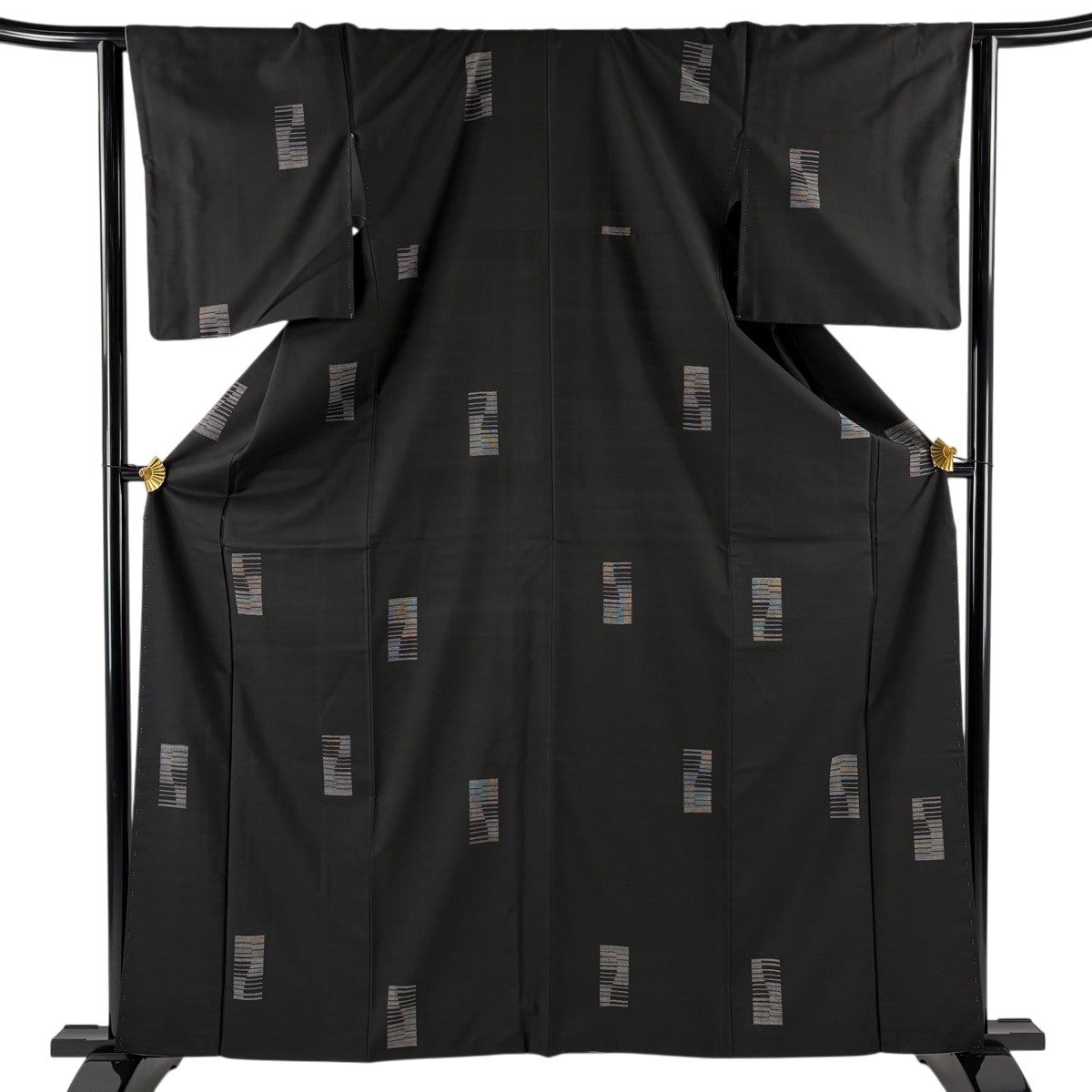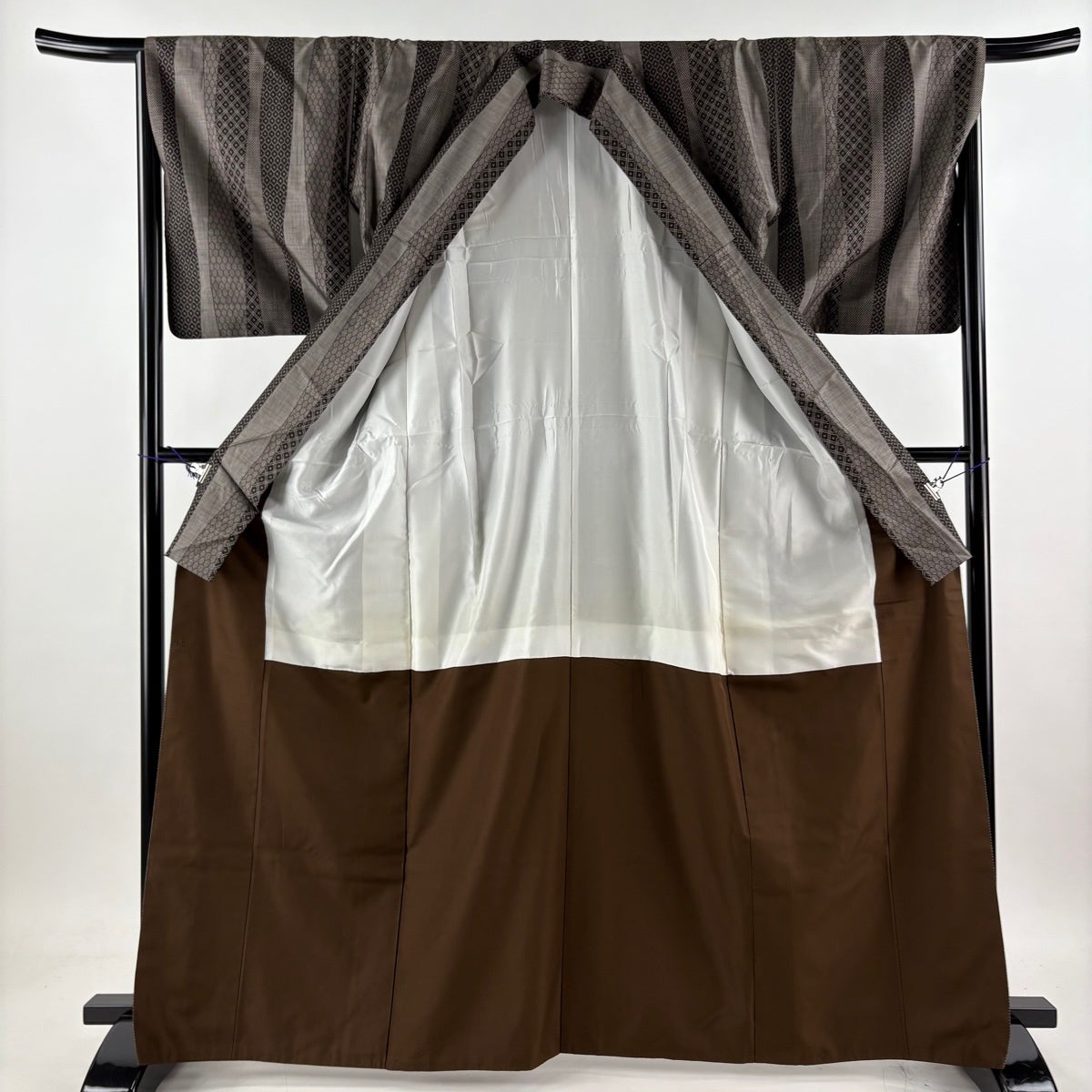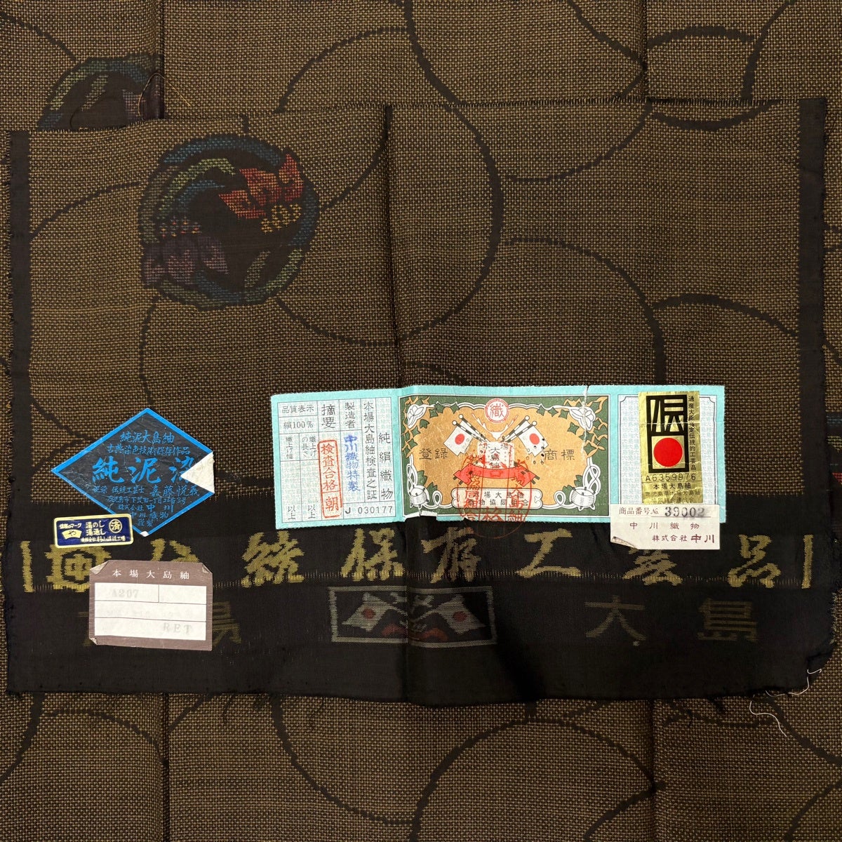 【美品】 大島紬 身丈163cm 裄丈63.5cm S 袷 純泥染め 証紙あり 幾何学 焦茶色 正絹 秀品