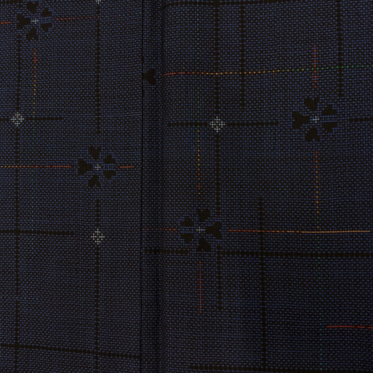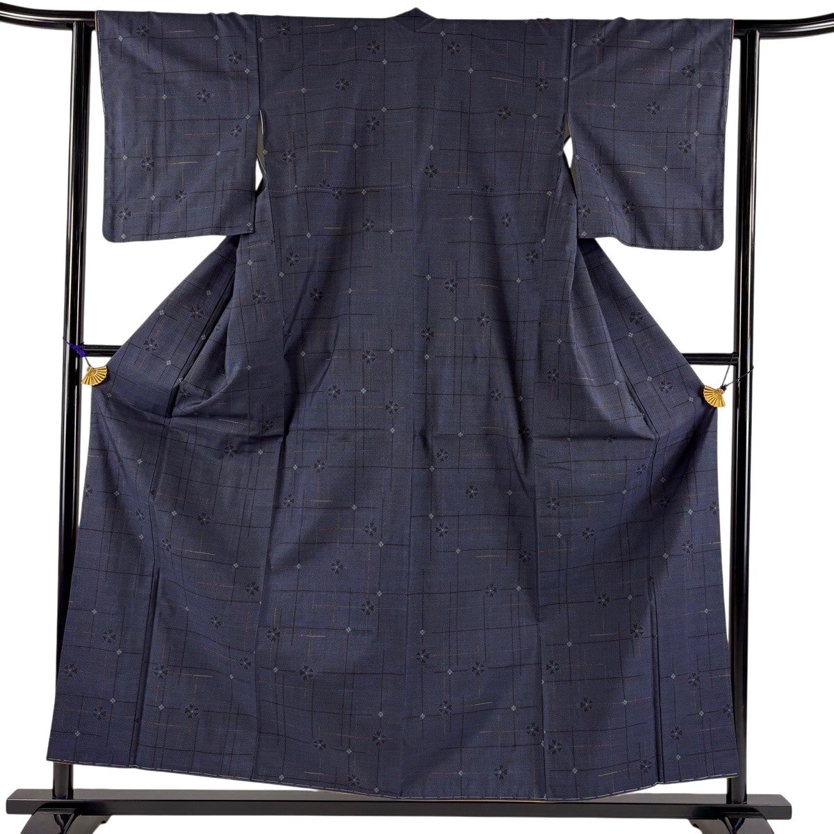 30%OFF 大島紬 身丈153.5cm 裄丈63.5cm S 袷 証紙あり 幾何学模様 紺色 正絹 名品 K30