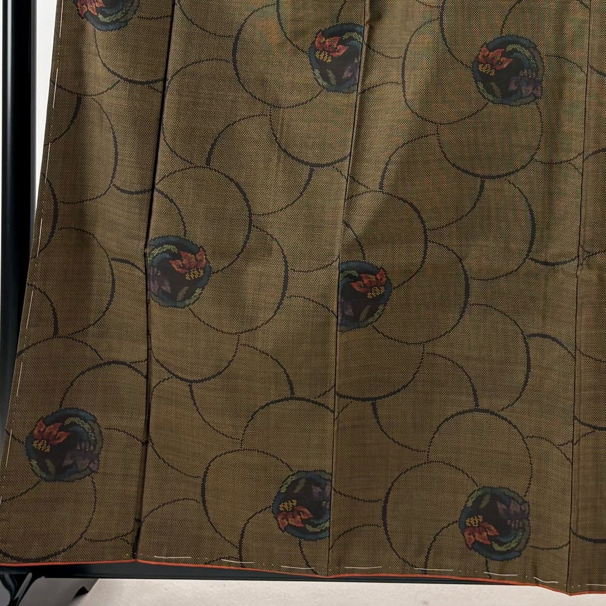 【美品】 大島紬 身丈163.5cm 裄丈64cm M 袷 純泥染 証紙あり 草花 唐草 深緑 正絹 名品