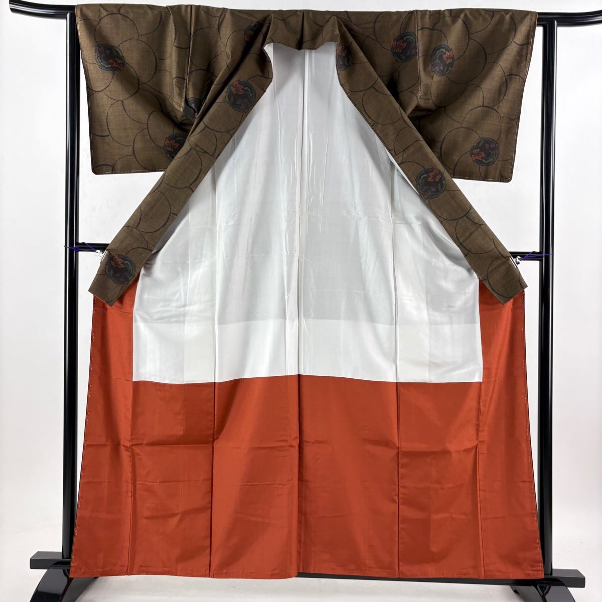 50%OFF 大島紬 身丈168cm 裄丈66cm M 袷 純泥染 証紙あり 雪輪 灰茶 正絹 名品 K50