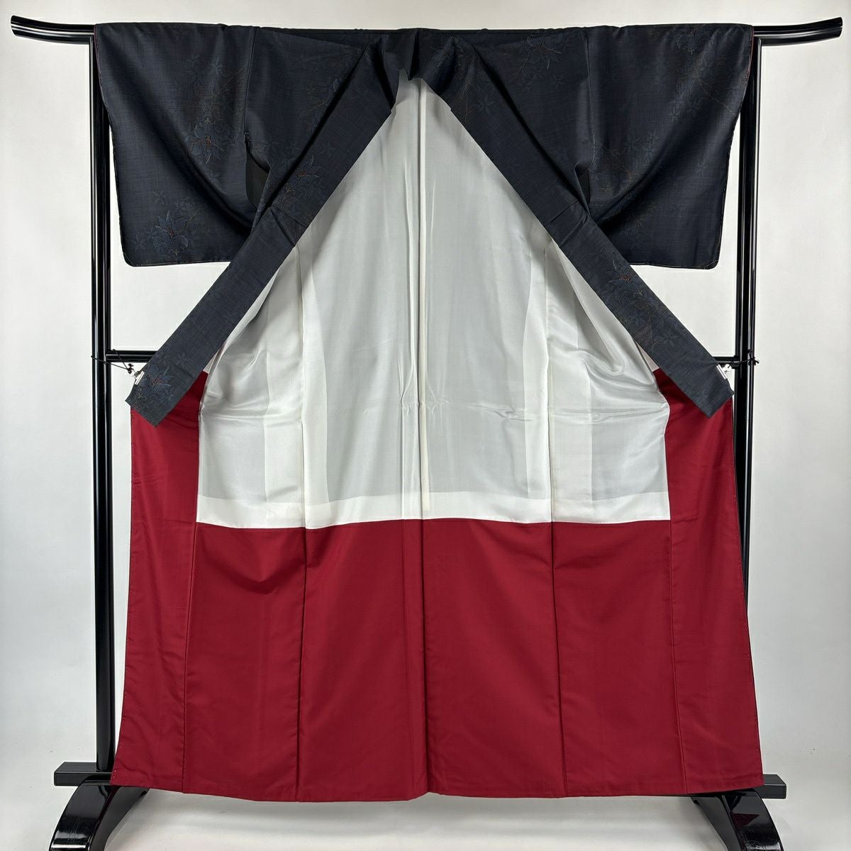 【美品】 大島紬 身丈162cm 裄丈66cm M 袷 都喜ヱ門 純泥染 落款あり 草花 墨色 正絹 逸品