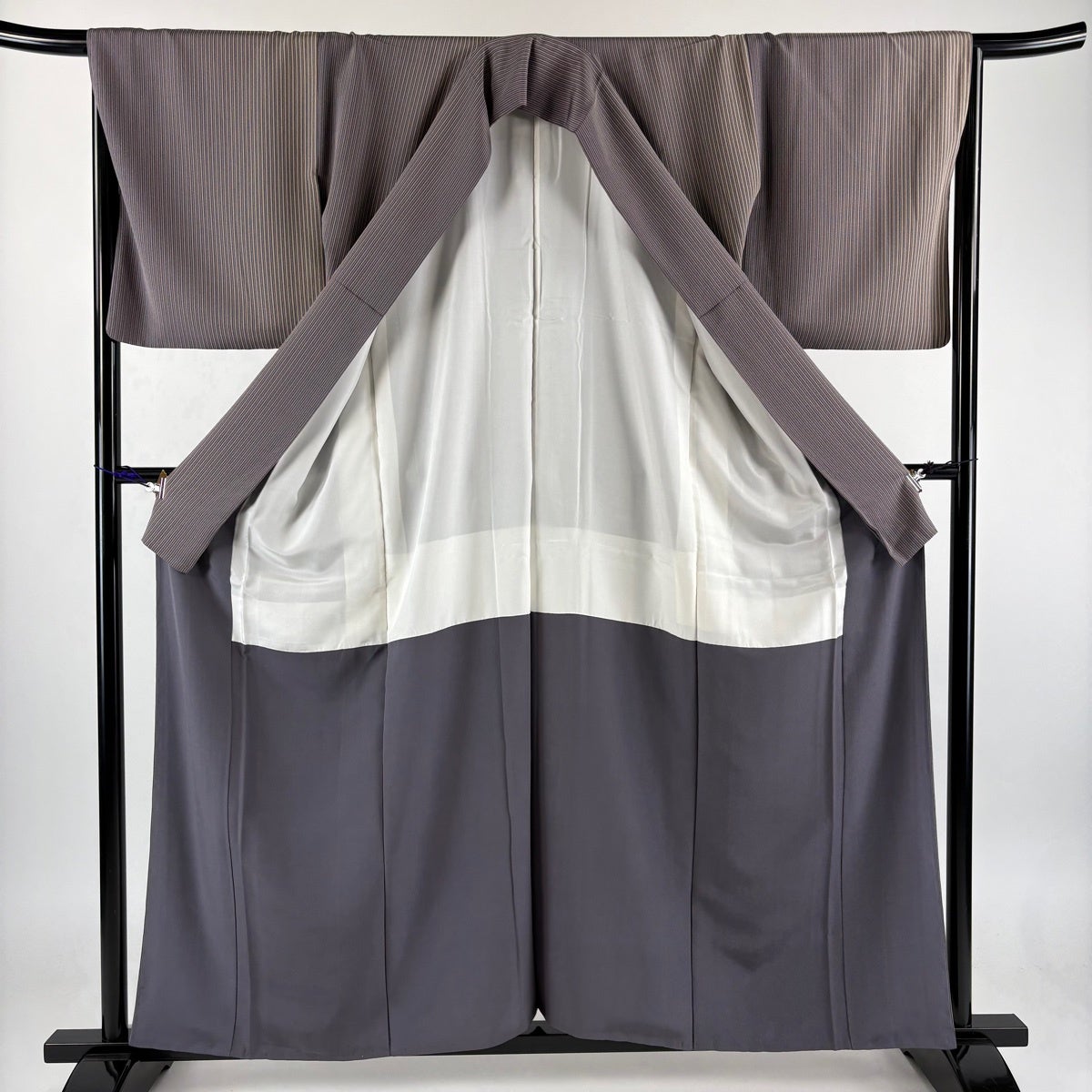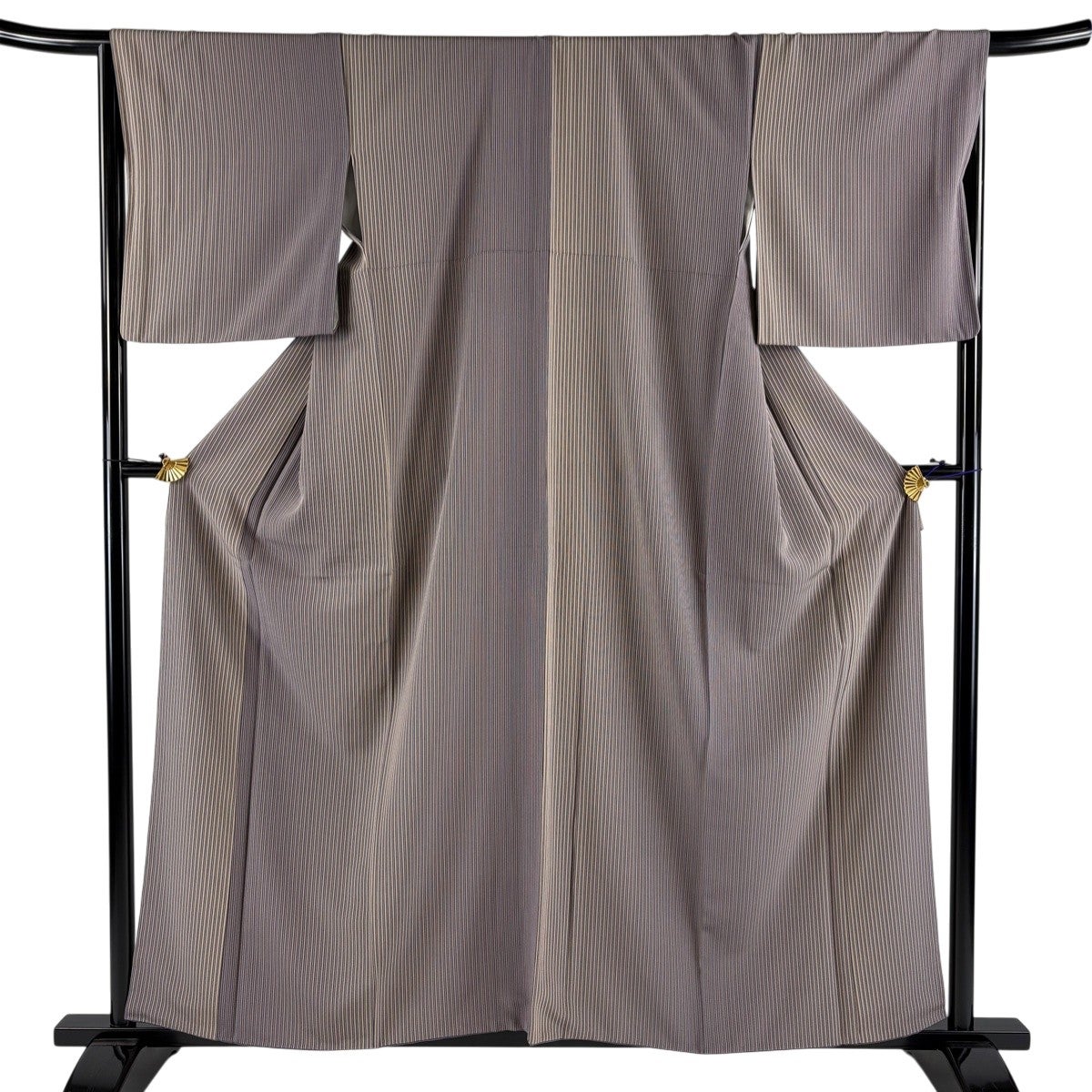 【美品】 小紋 身丈158.5cm 裄丈66.5cm M 袷 縦縞 灰紫 正絹 秀品