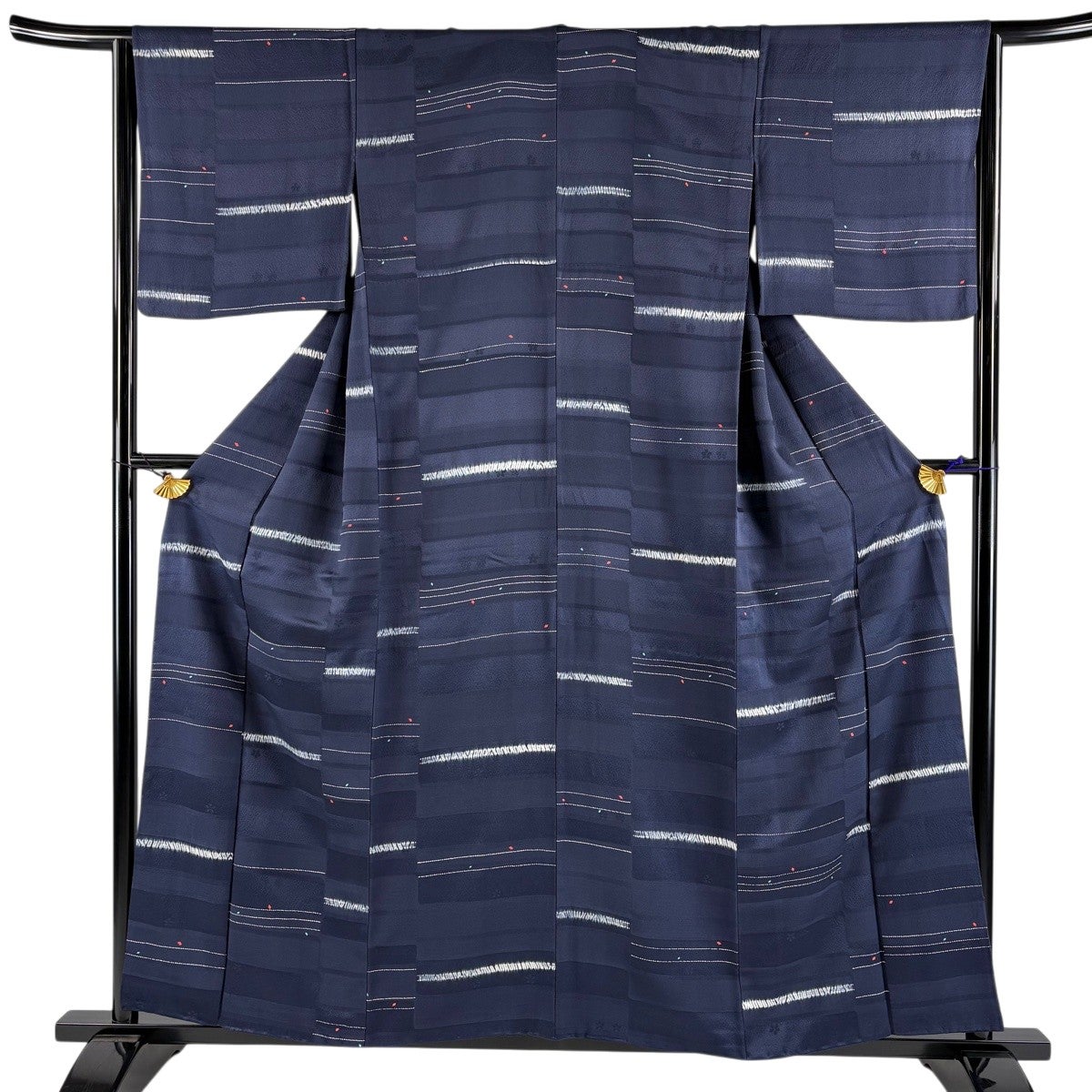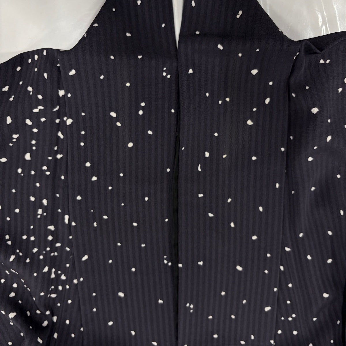 小紋 身丈155cm 裄丈64.5cm M 袷 胴抜き 縞 地紋 濃紺 正絹 秀品