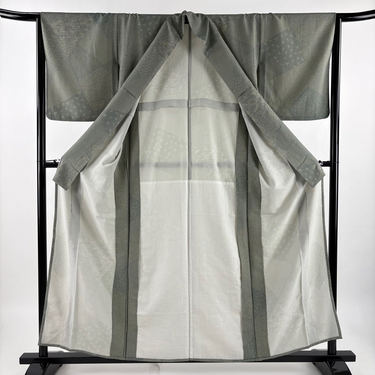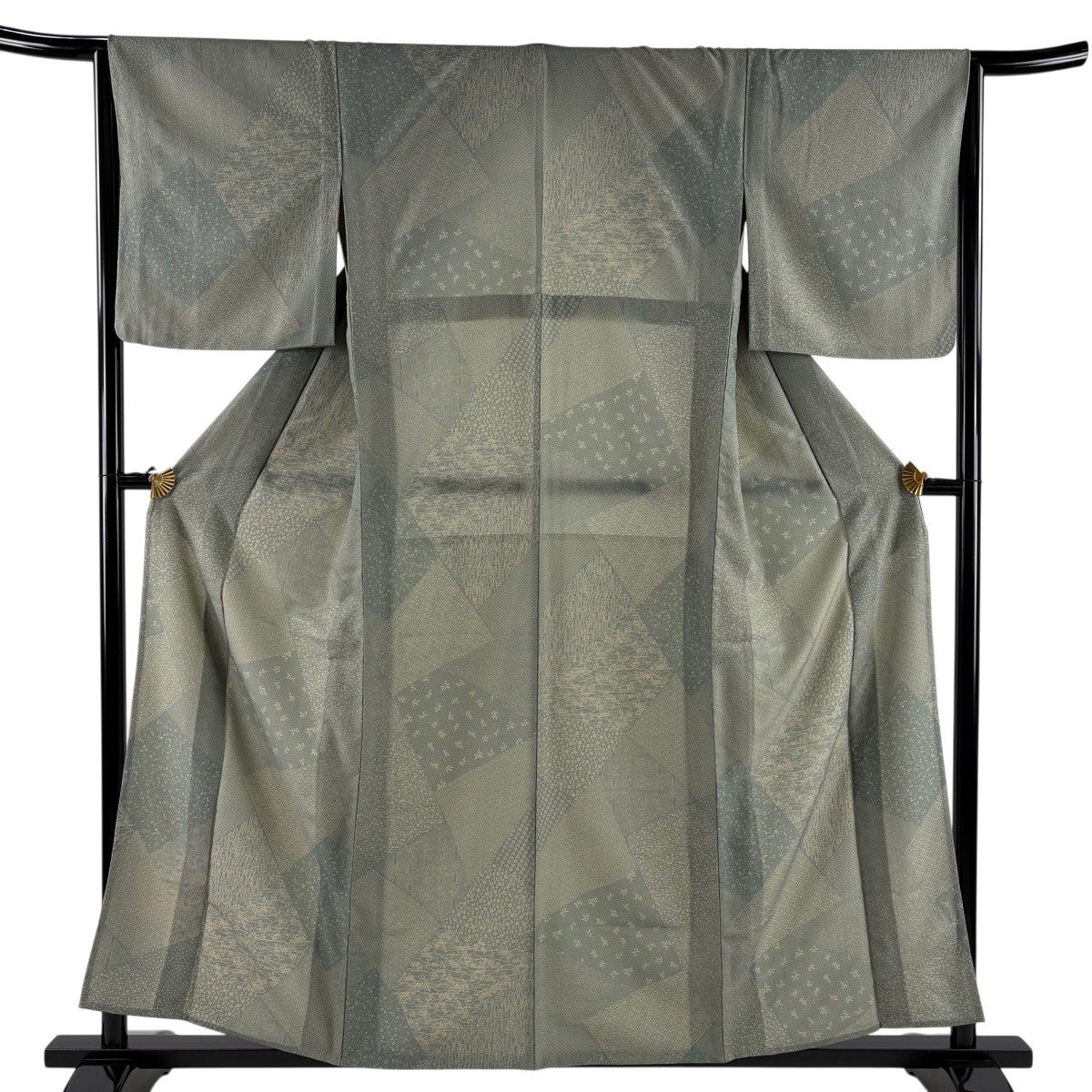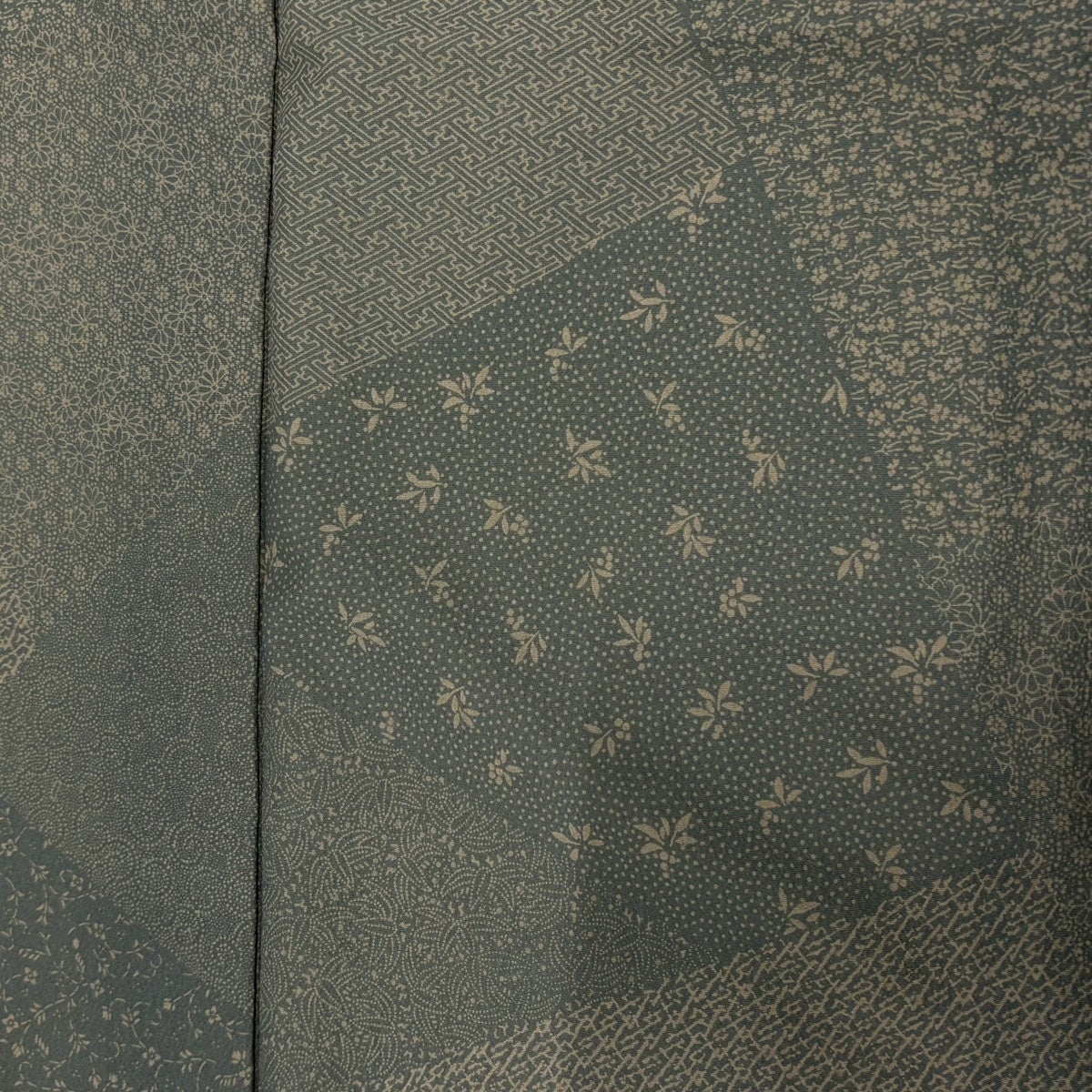 小紋 身丈151cm 裄丈63cm S 袷 幾何学模様 総絞り 灰緑 正絹 秀品