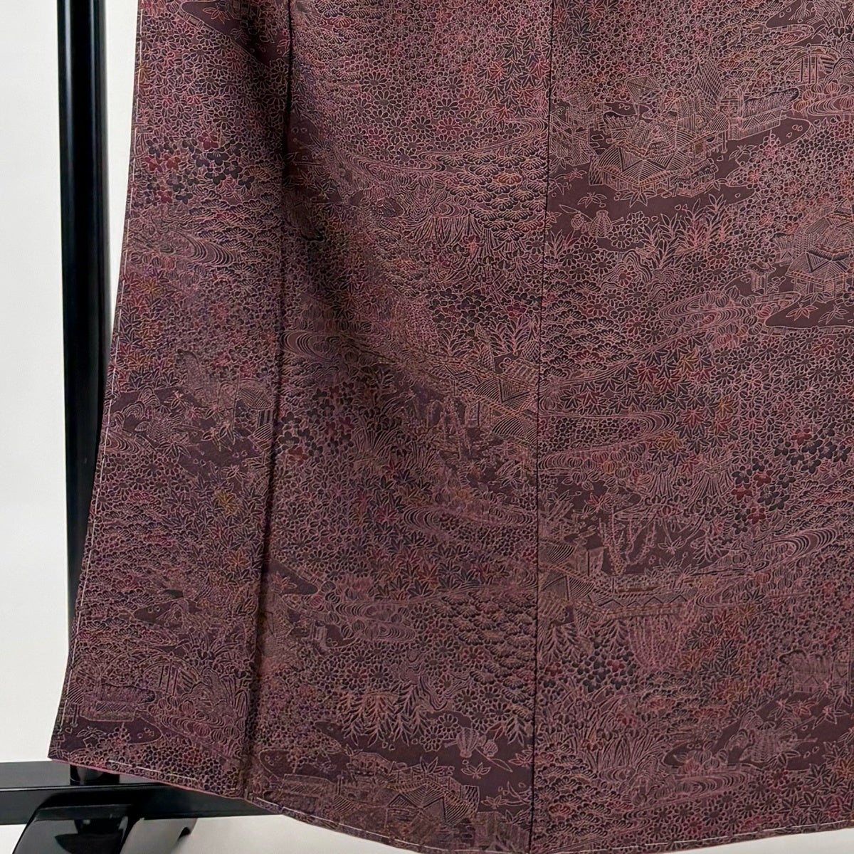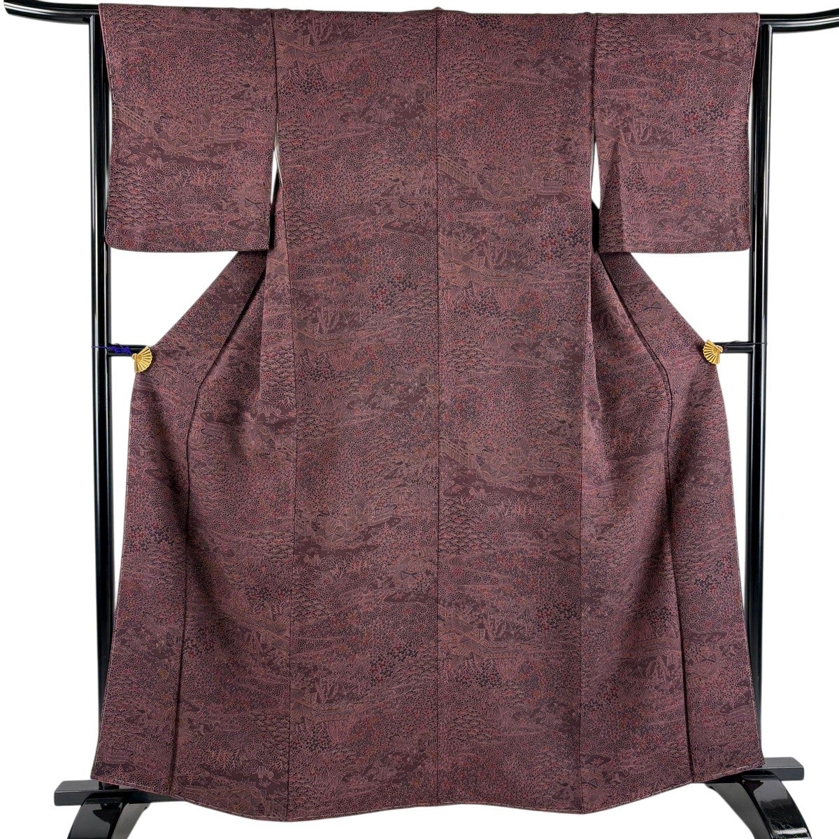 小紋 身丈154cm 裄丈66.5cm M 袷 桜 刺繍 金糸 濃紫 正絹 秀品