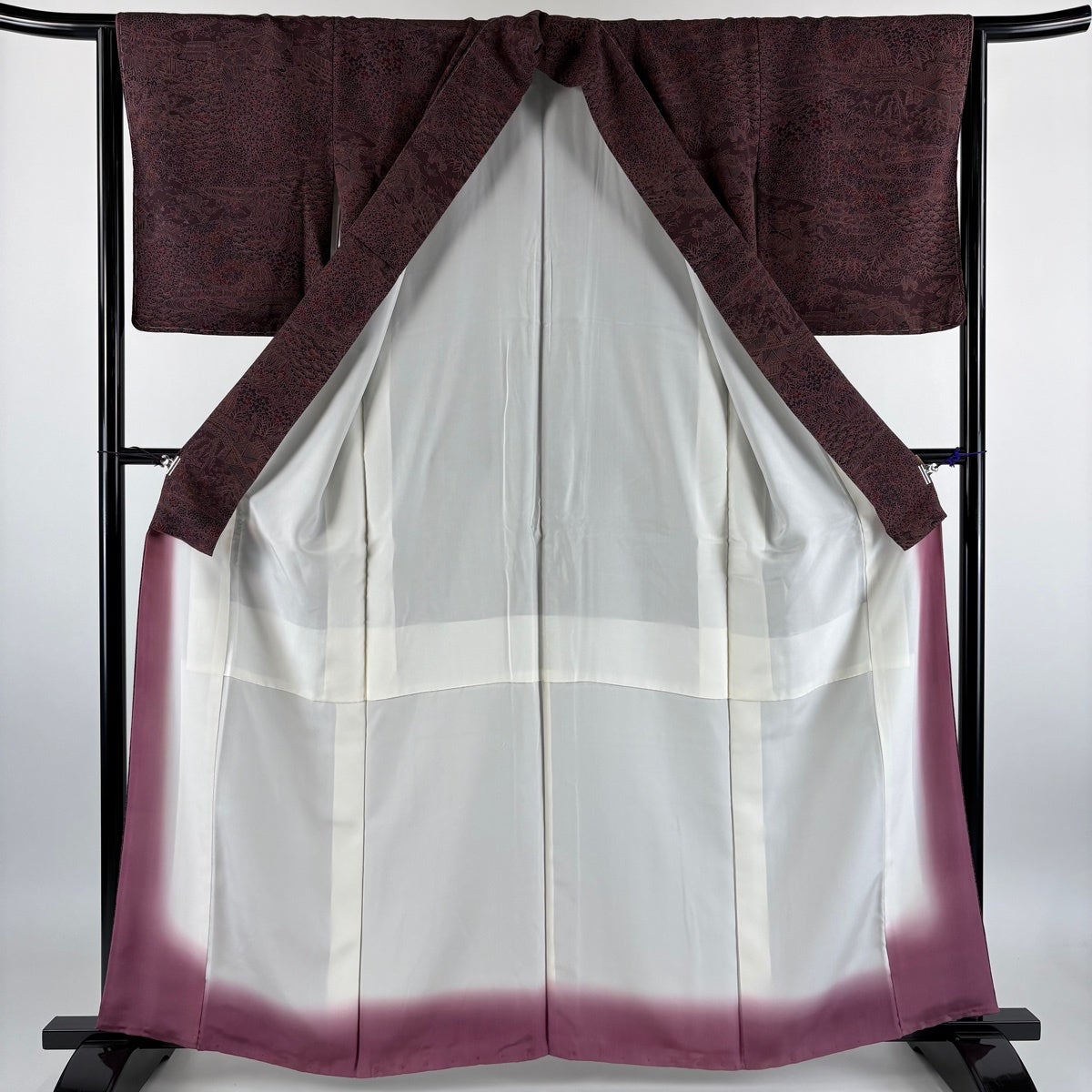 小紋 身丈162.5cm 裄丈64.5cm M 袷 縦ぼかし 地紋 小豆色 正絹 秀品