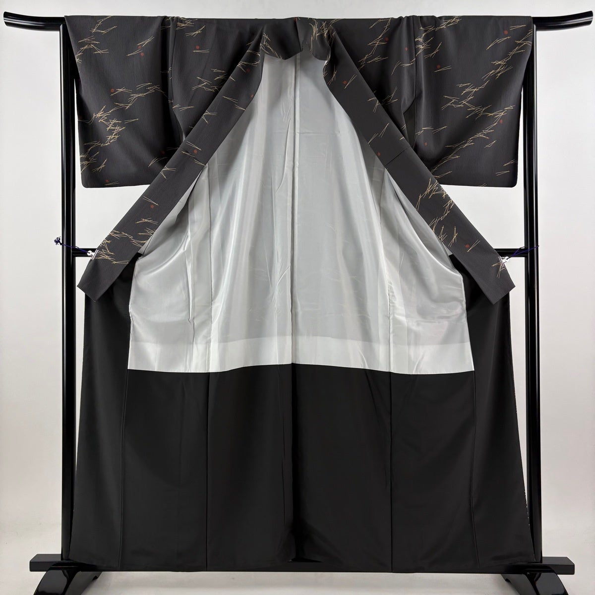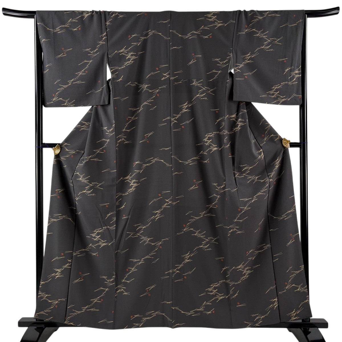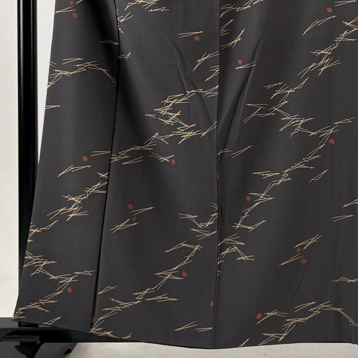 【美品】 小紋 身丈159.5cm 裄丈63.5cm S 袷 枝葉 黒灰 正絹 秀品