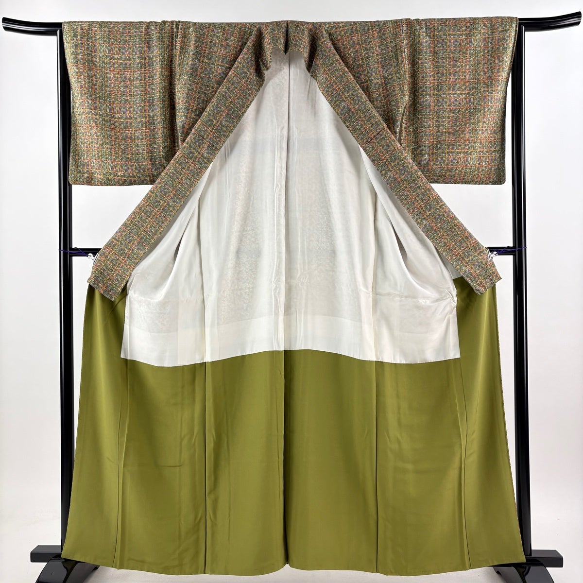小紋 身丈164cm 裄丈67.5cm L 薄物 絽 うさぎ 芝 薄緑 正絹 名品