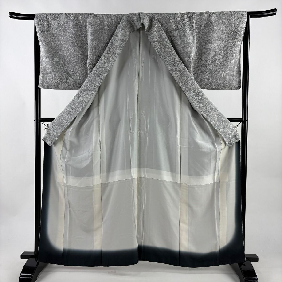 小紋 身丈158cm 裄丈62cm S 袷 草花 地紋 灰色 正絹 秀品 一つ紋