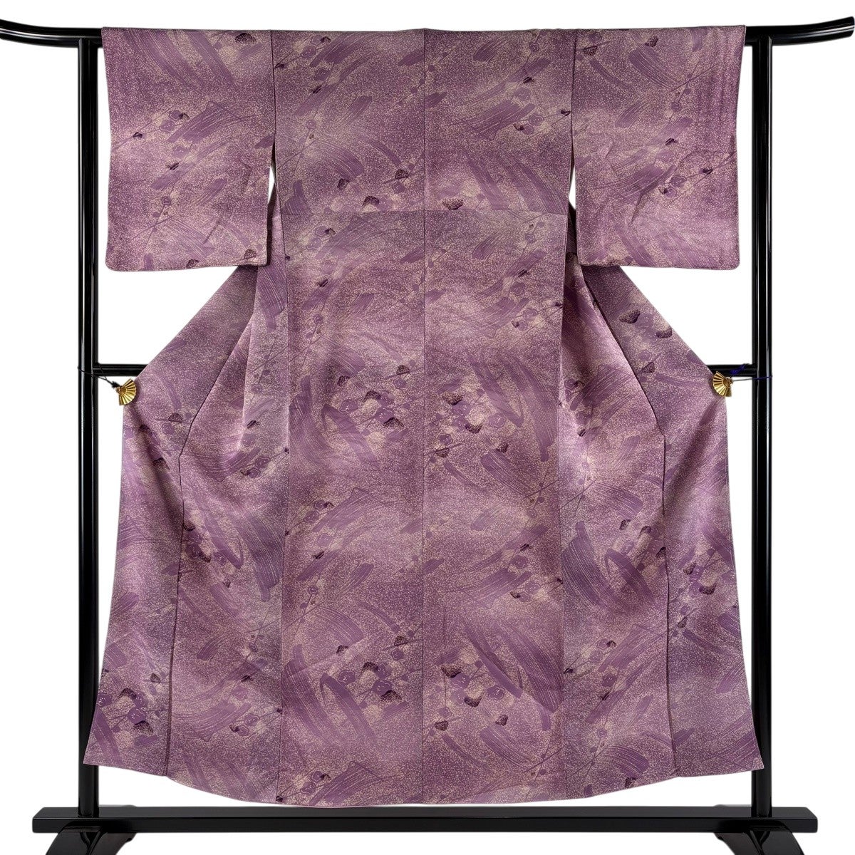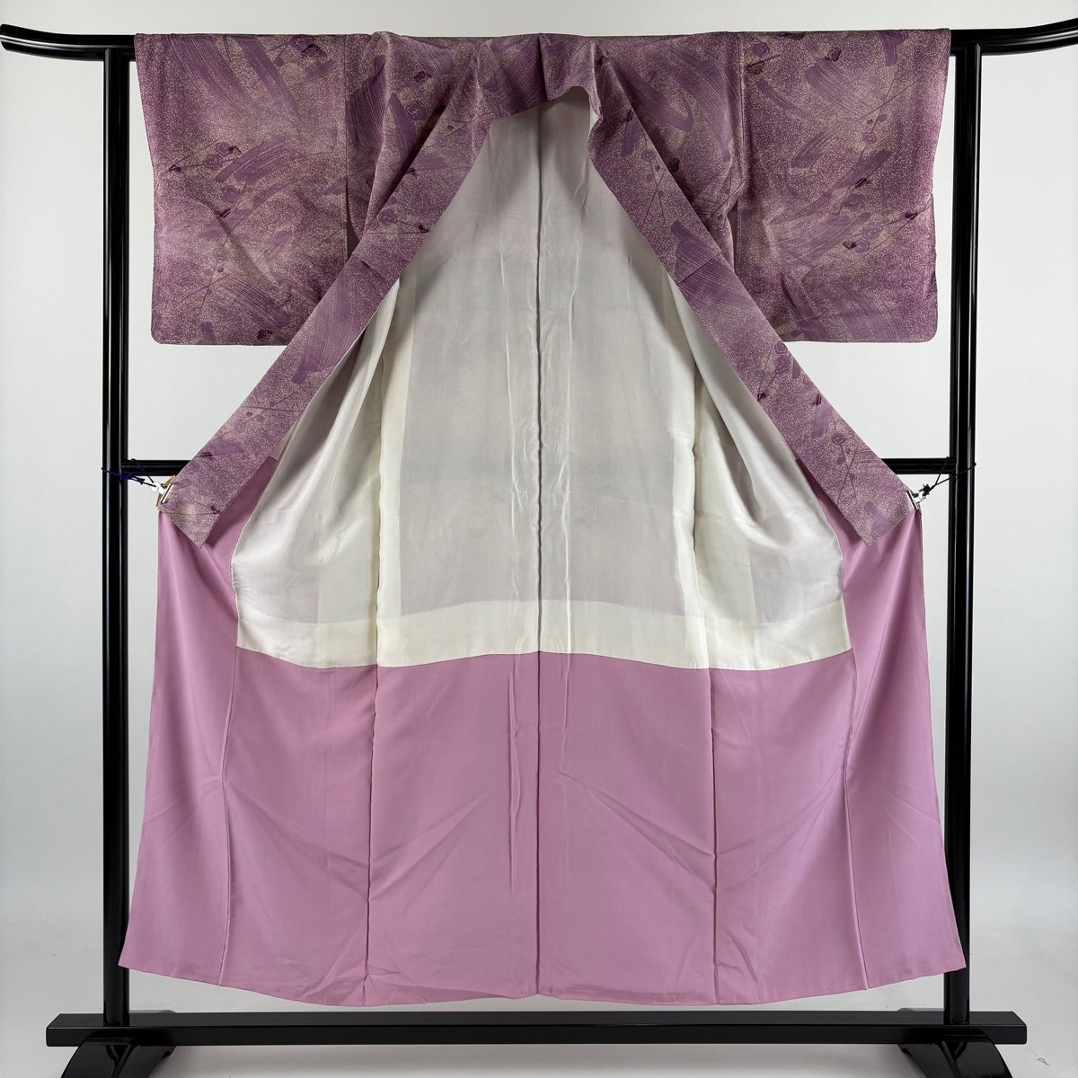 小紋 身丈154cm 裄丈63cm S 袷 梅 流水 金彩 ぼかし 灰紫 正絹 秀品