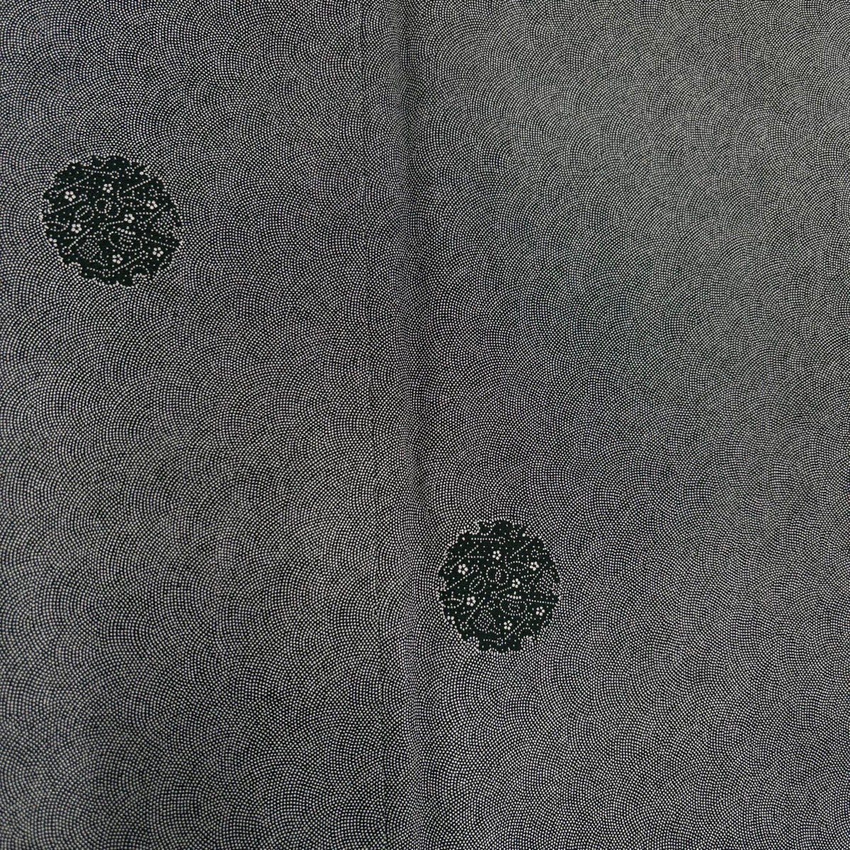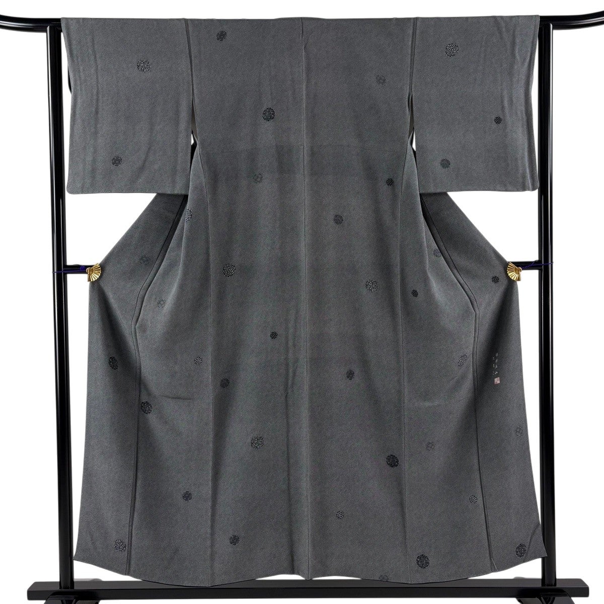 小紋 身丈165cm 裄丈63cm S 単衣 紬地 変わり市松 幾何学 絞り 灰色 正絹 秀品