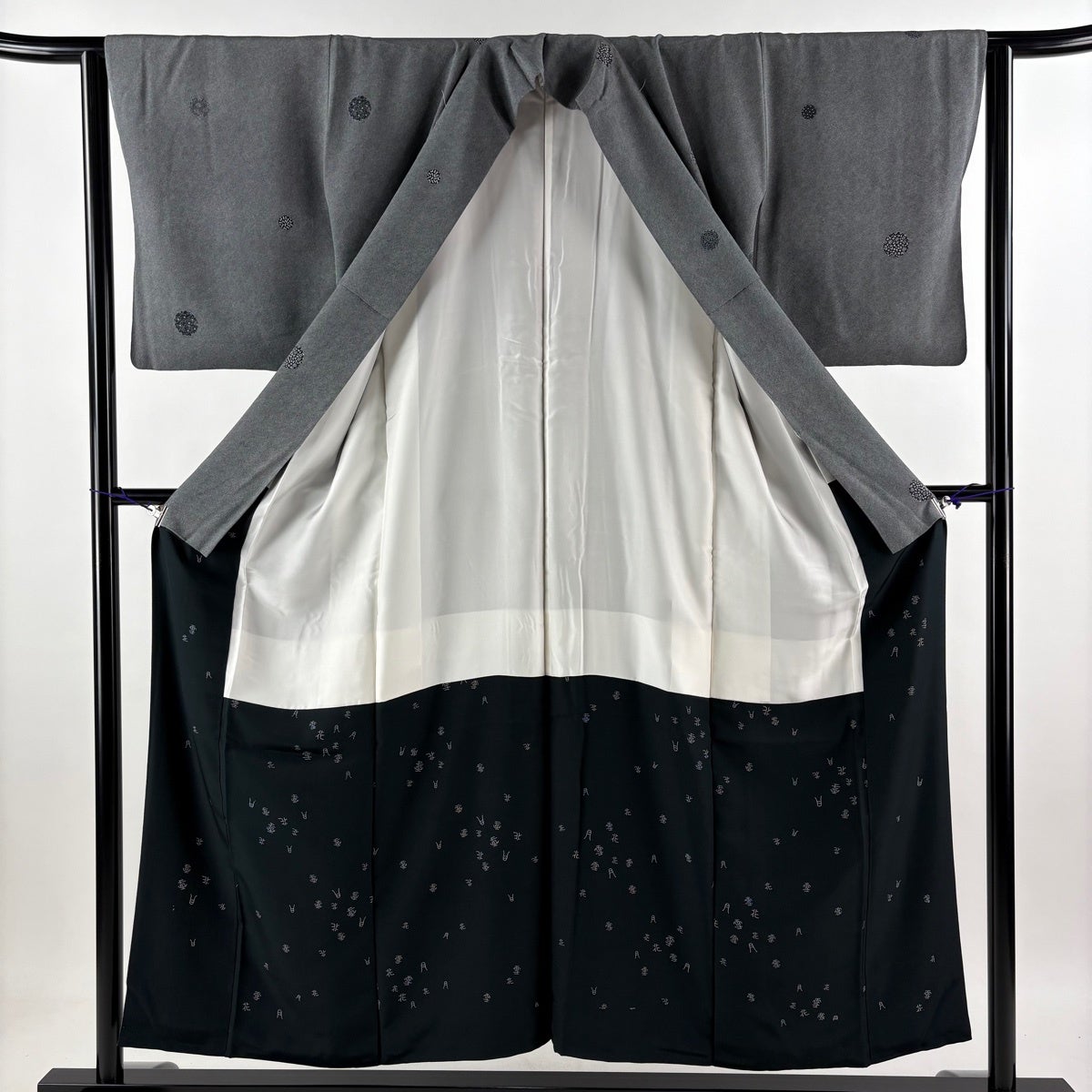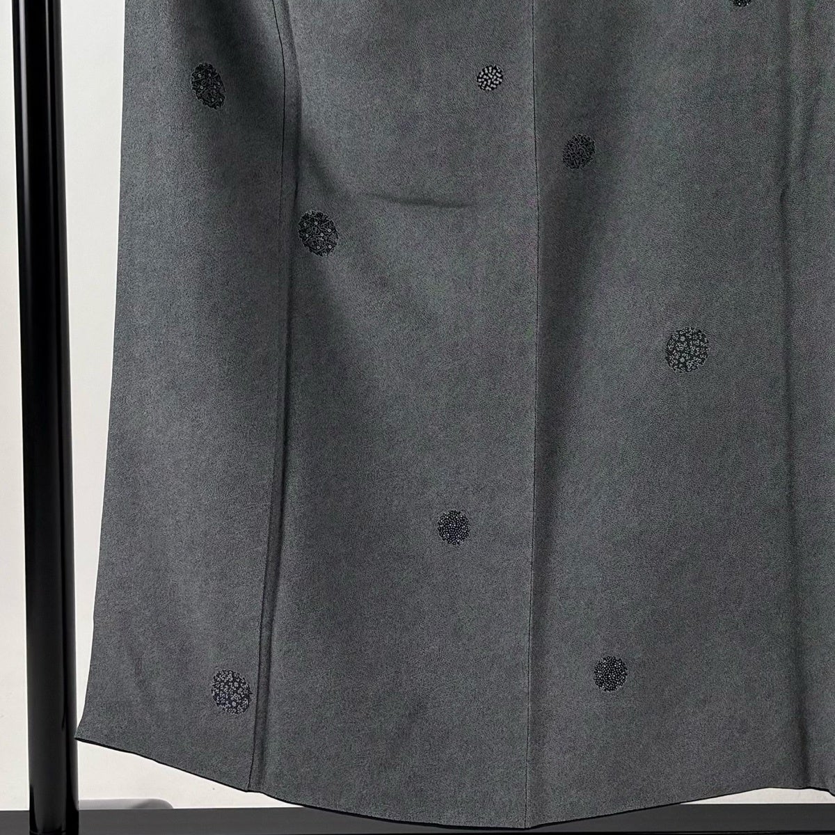 【美品】 小紋 身丈163cm 裄丈63cm S 袷 紬地 道長取り 草花 絞り 灰茶 正絹 名品