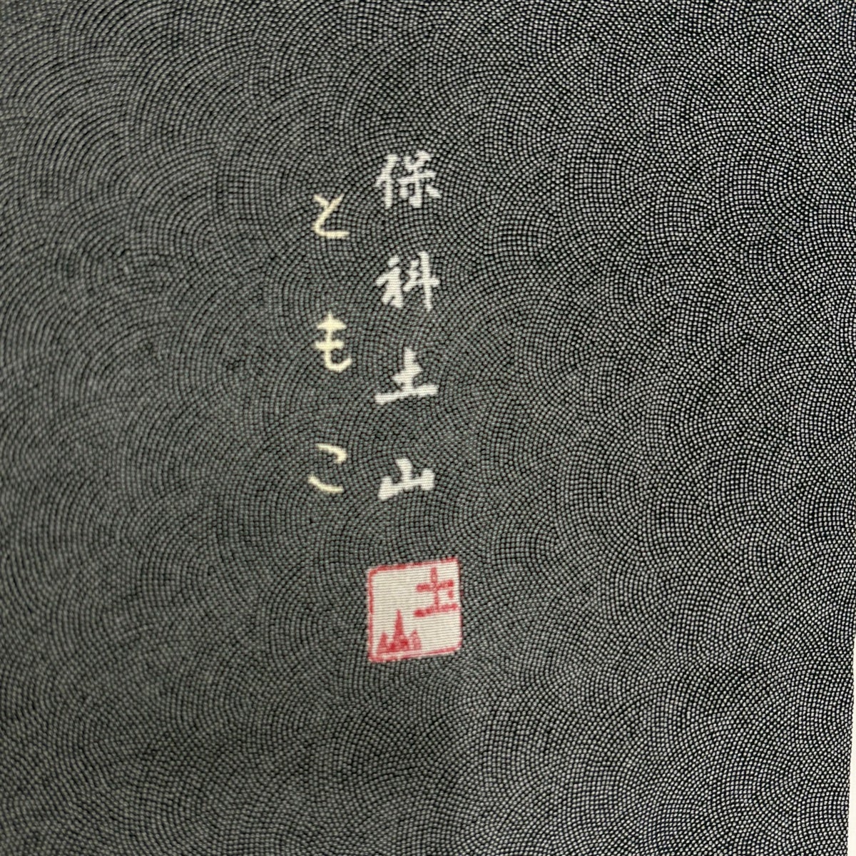 小紋 身丈154cm 裄丈64.5cm M 袷 斉藤三才 落款あり 幾何学模様 黒 正絹 名品