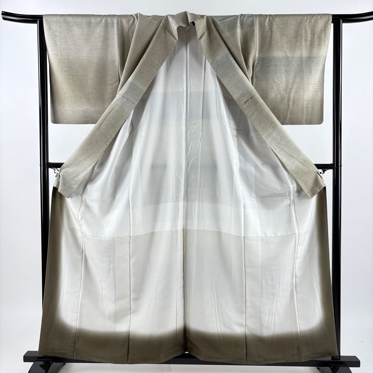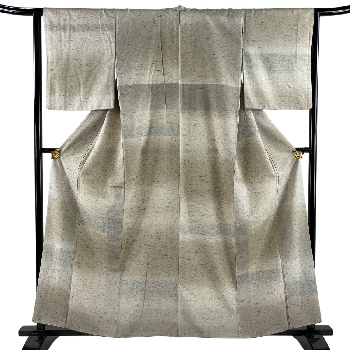 小紋 身丈154.5cm 裄丈61.5cm S 袷 紬地 縦縞 幾何学模様 絞り 灰緑 正絹 秀品