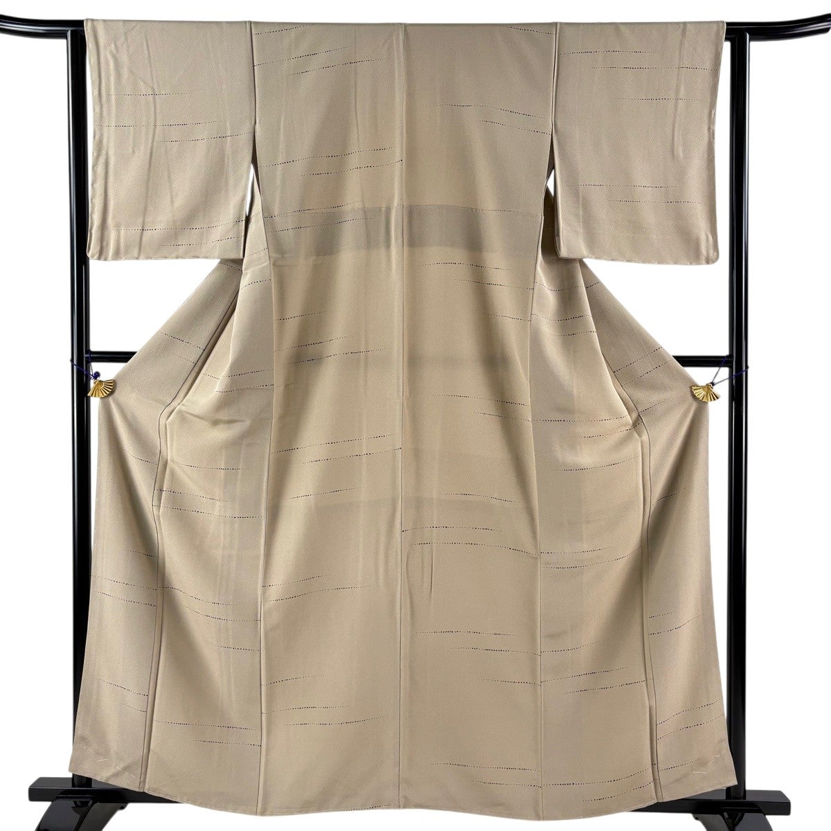 【美品】 小紋 身丈156cm 裄丈62cm S 薄物 絽 鈴 ドット クリーム 正絹 秀品