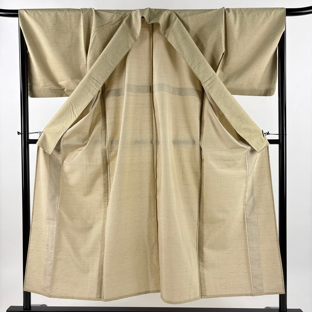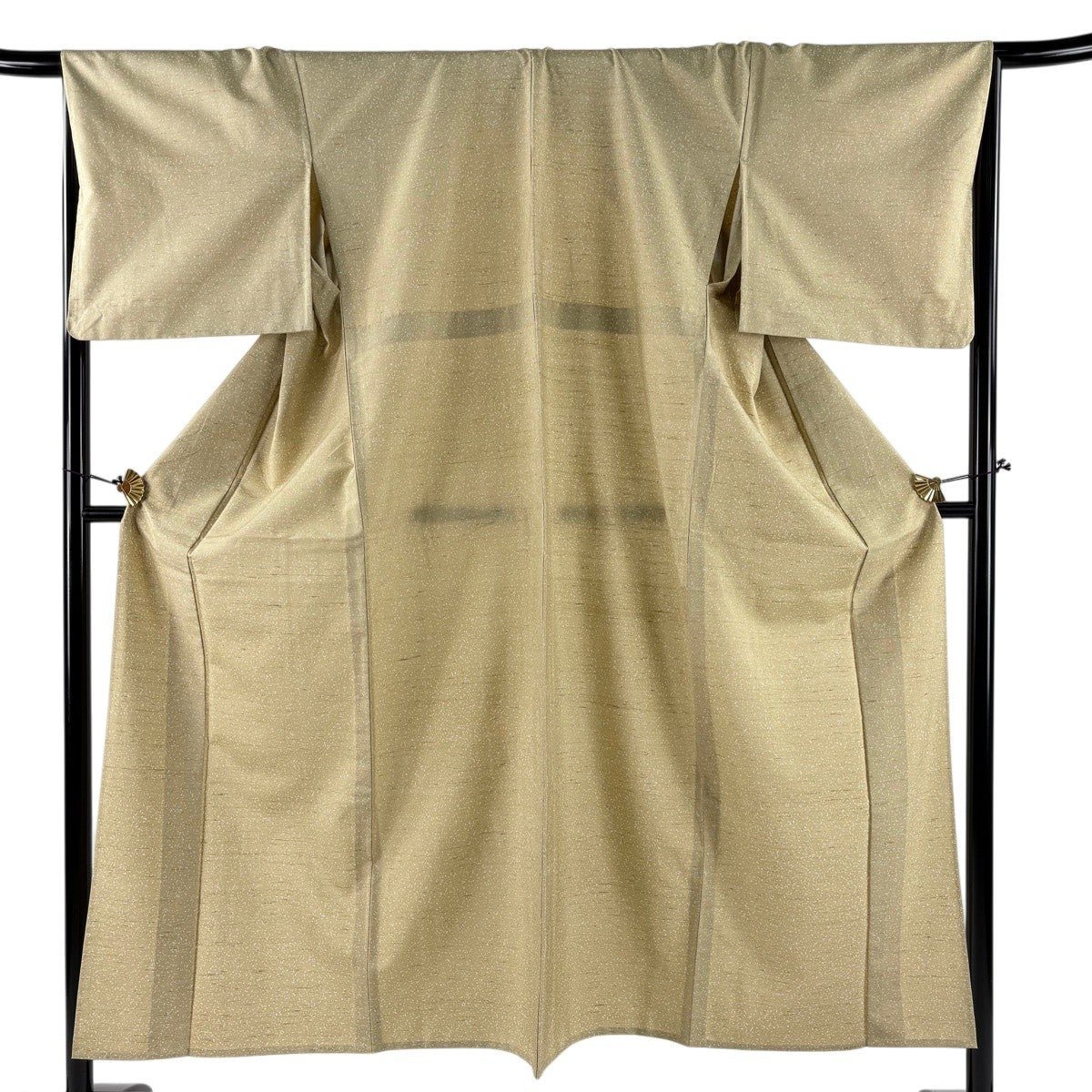 【美品】 小紋 身丈153cm 裄丈62.5cm S 袷 雪輪 地紋 金彩 薄茶色 正絹 秀品
