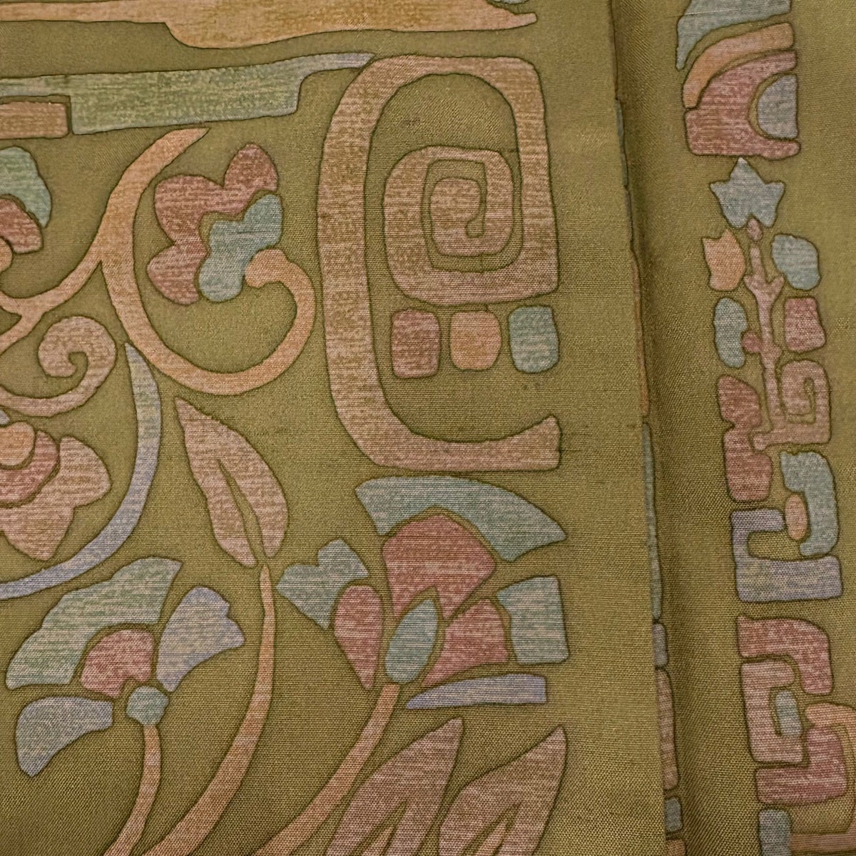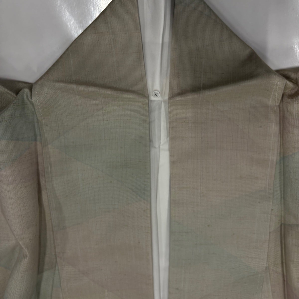 【美品】 小紋 身丈155.5cm 裄丈65cm M 単衣 唐草 ベージュ 正絹 逸品 一つ紋