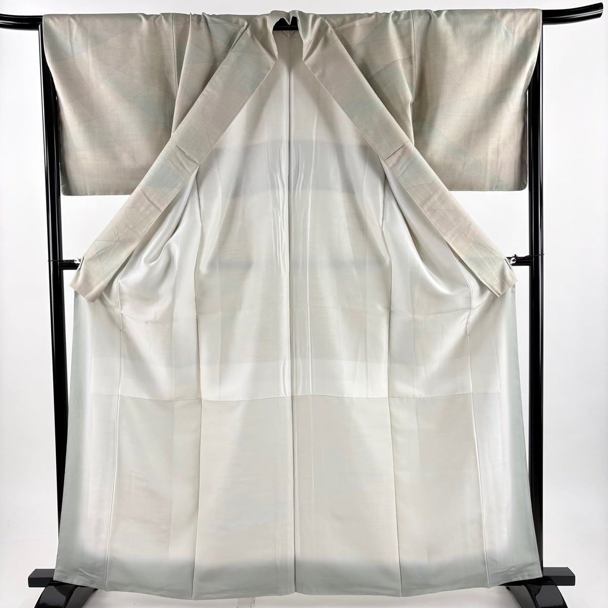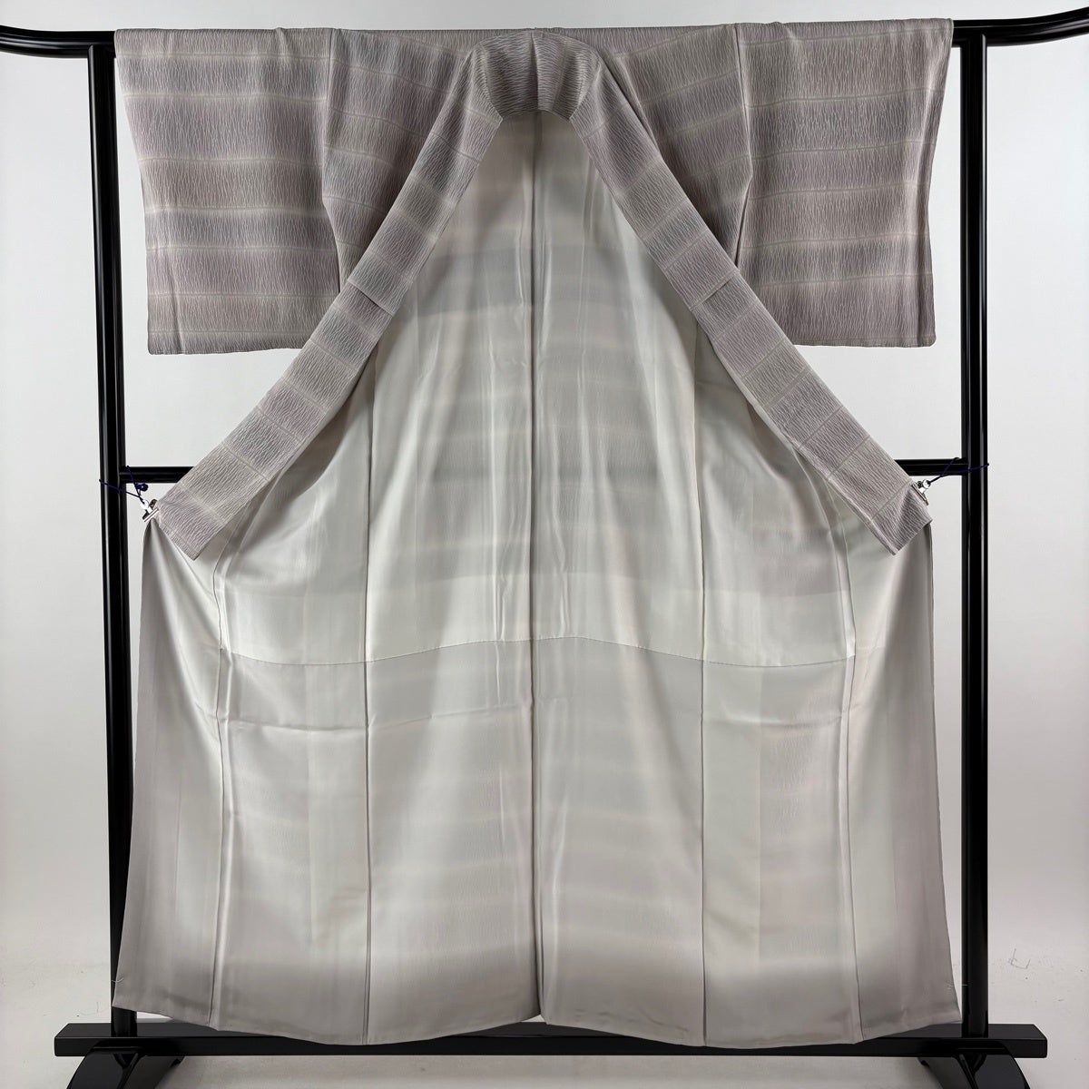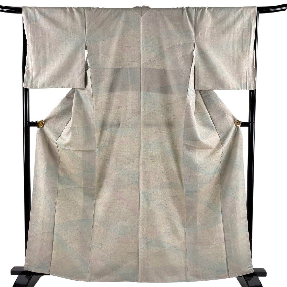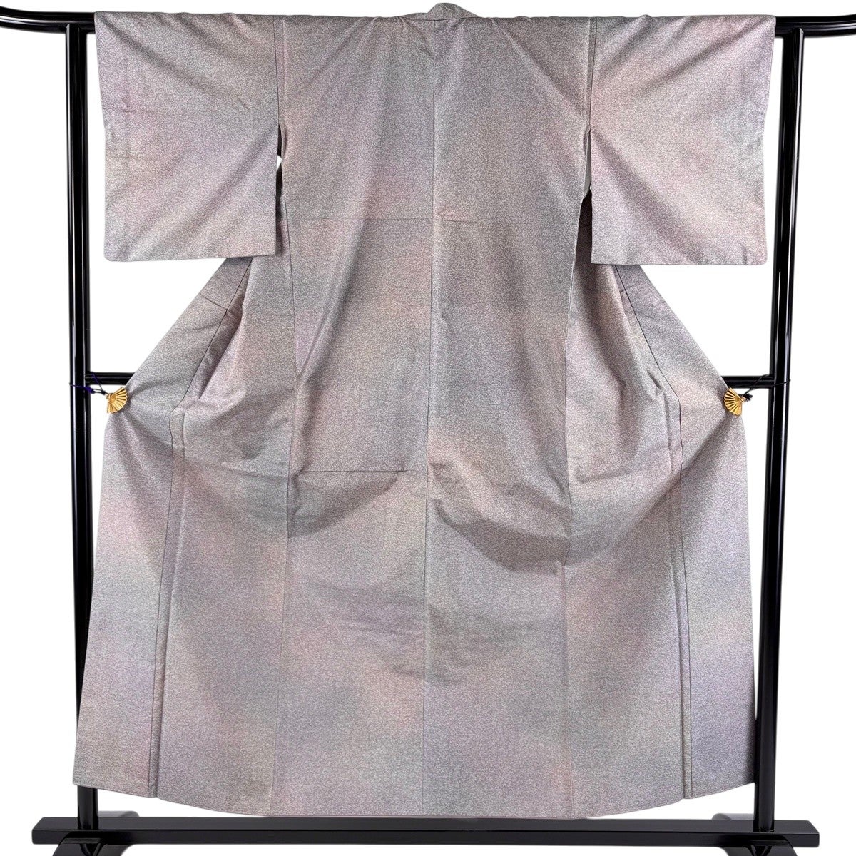 小紋 身丈159.5cm 裄丈65cm M 薄物 手染め 段縞 菱 紗織 ぼかし 灰色 正絹 名品