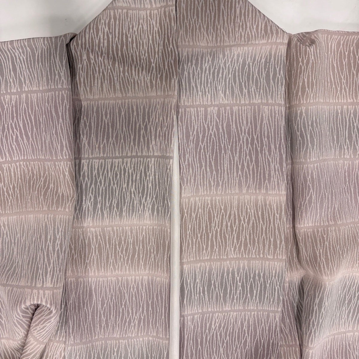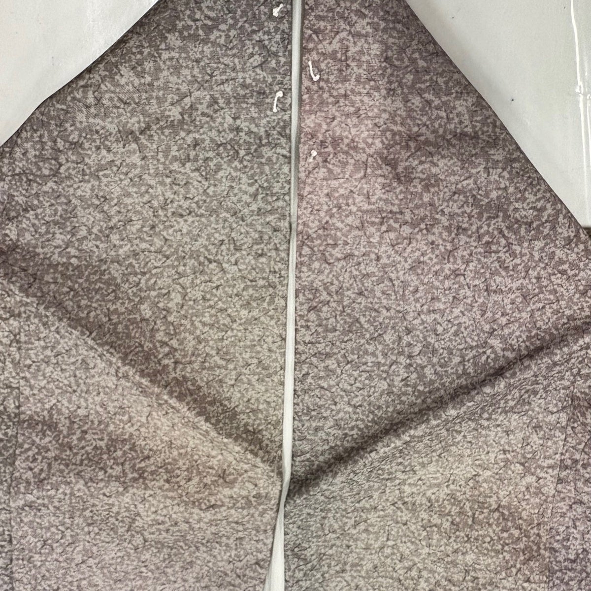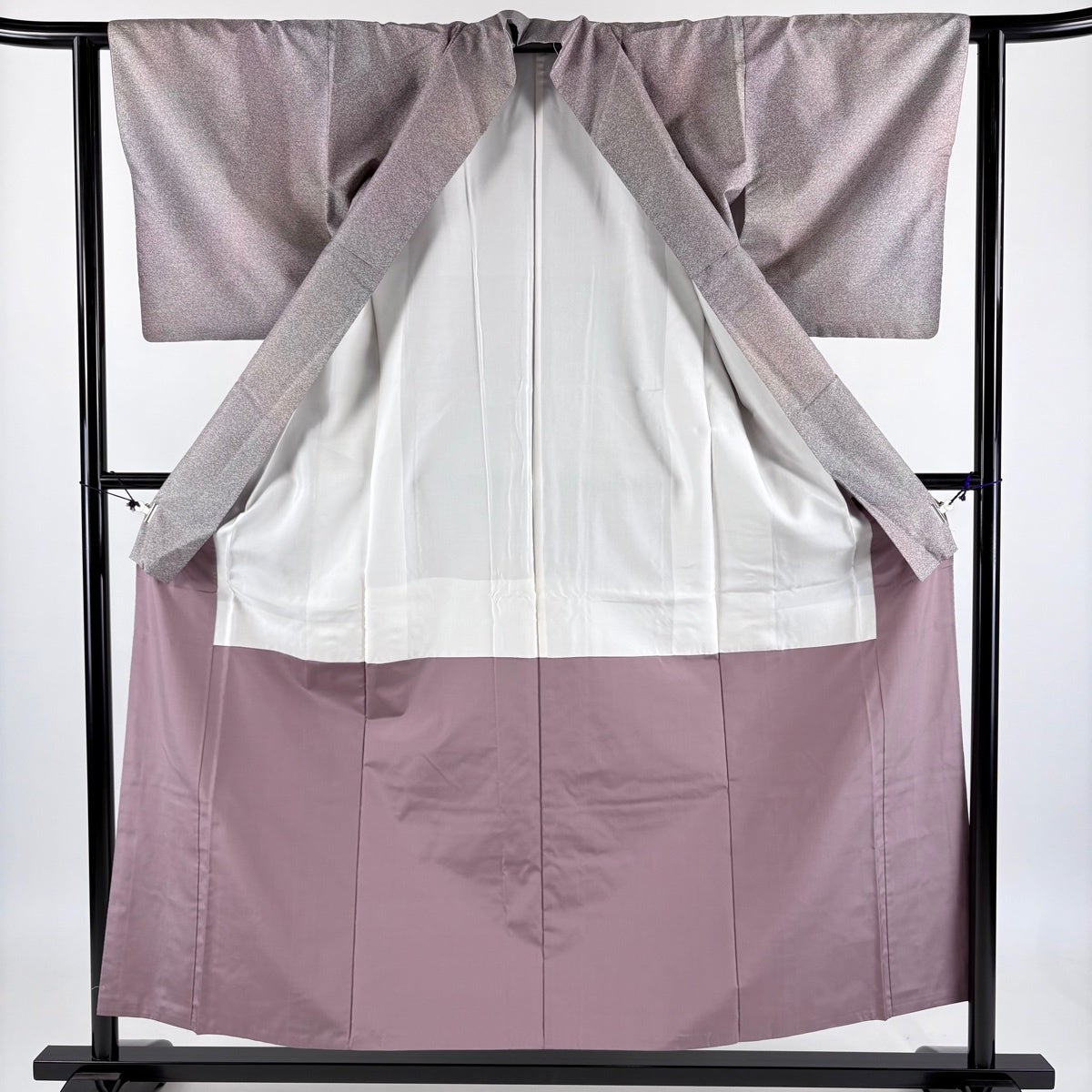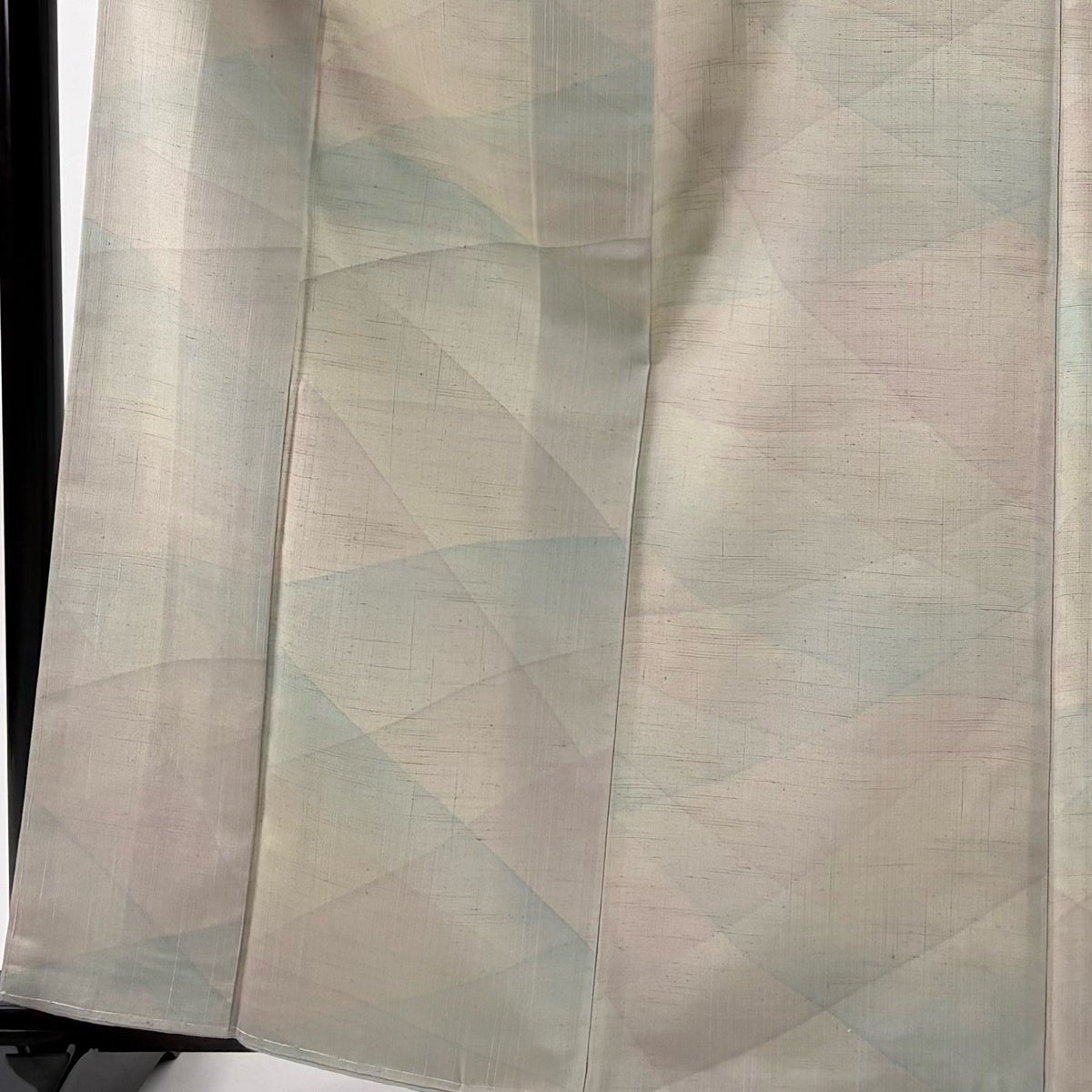小紋 身丈159.5cm 裄丈65cm M 薄物 手染め 段縞 菱 紗織 ぼかし 灰色 正絹 名品